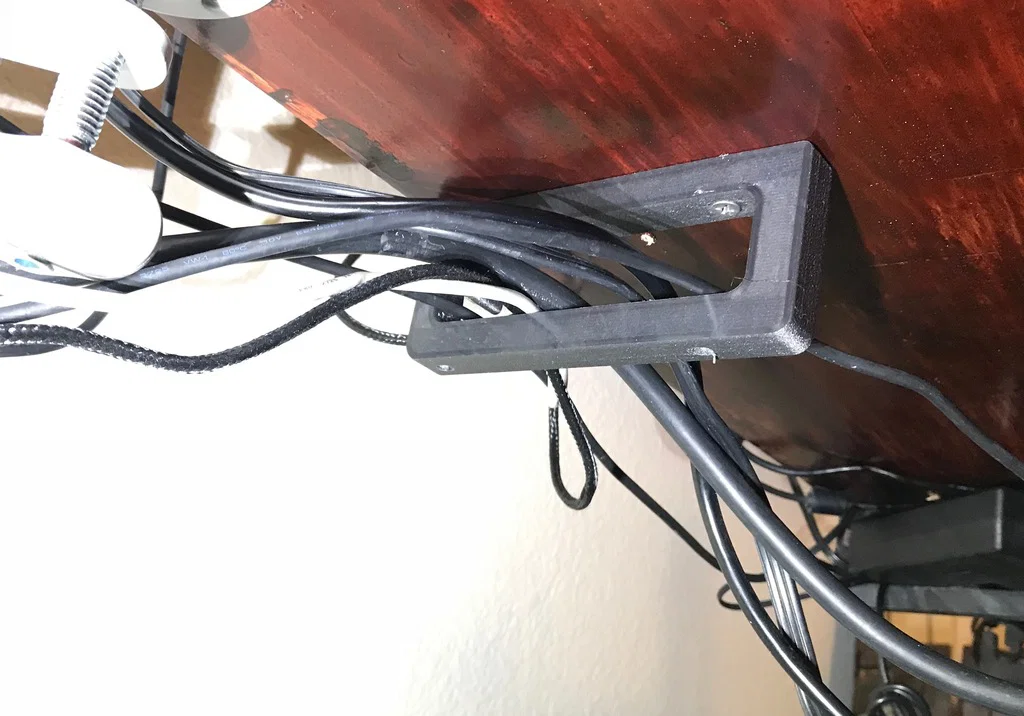 Móc treo quản lý dây cáp đơn giản gắn dưới bàn, giúp cố định dây điện gọn gàng và tránh tình trạng dây bị kéo tuột. Thiết kế dễ in, không cần support, nay đã có thêm nhiều phiên bản tối ưu hơn.