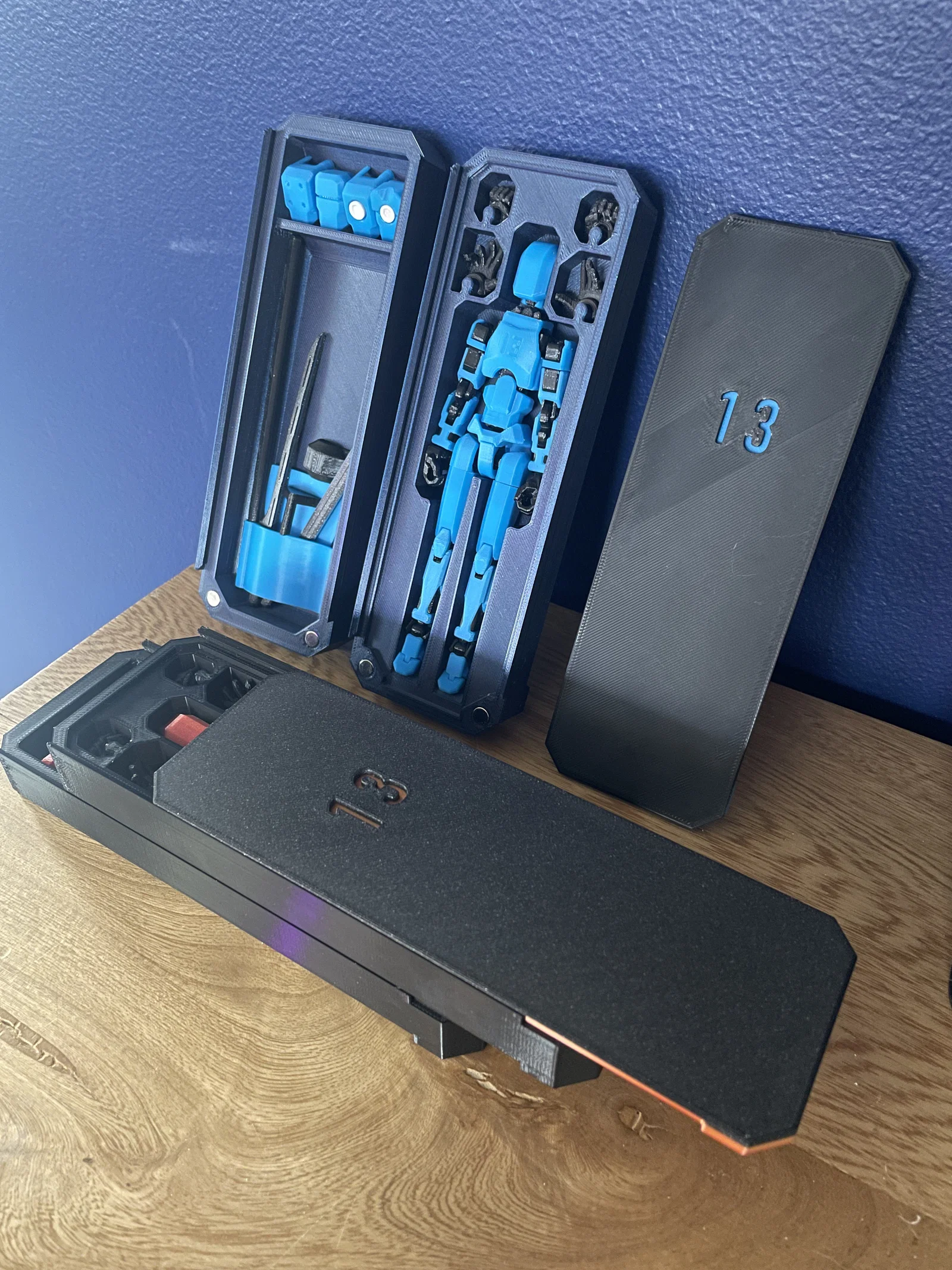 Giải pháp hộp đựng cho mô hình Dummy 13 và phụ kiện đi kèm. Thiết kế có thể xếp chồng, sử dụng nam châm 6x3mm để cố định. Bao gồm cả file STEP để anh em dễ dàng tùy chỉnh theo nhu cầu.