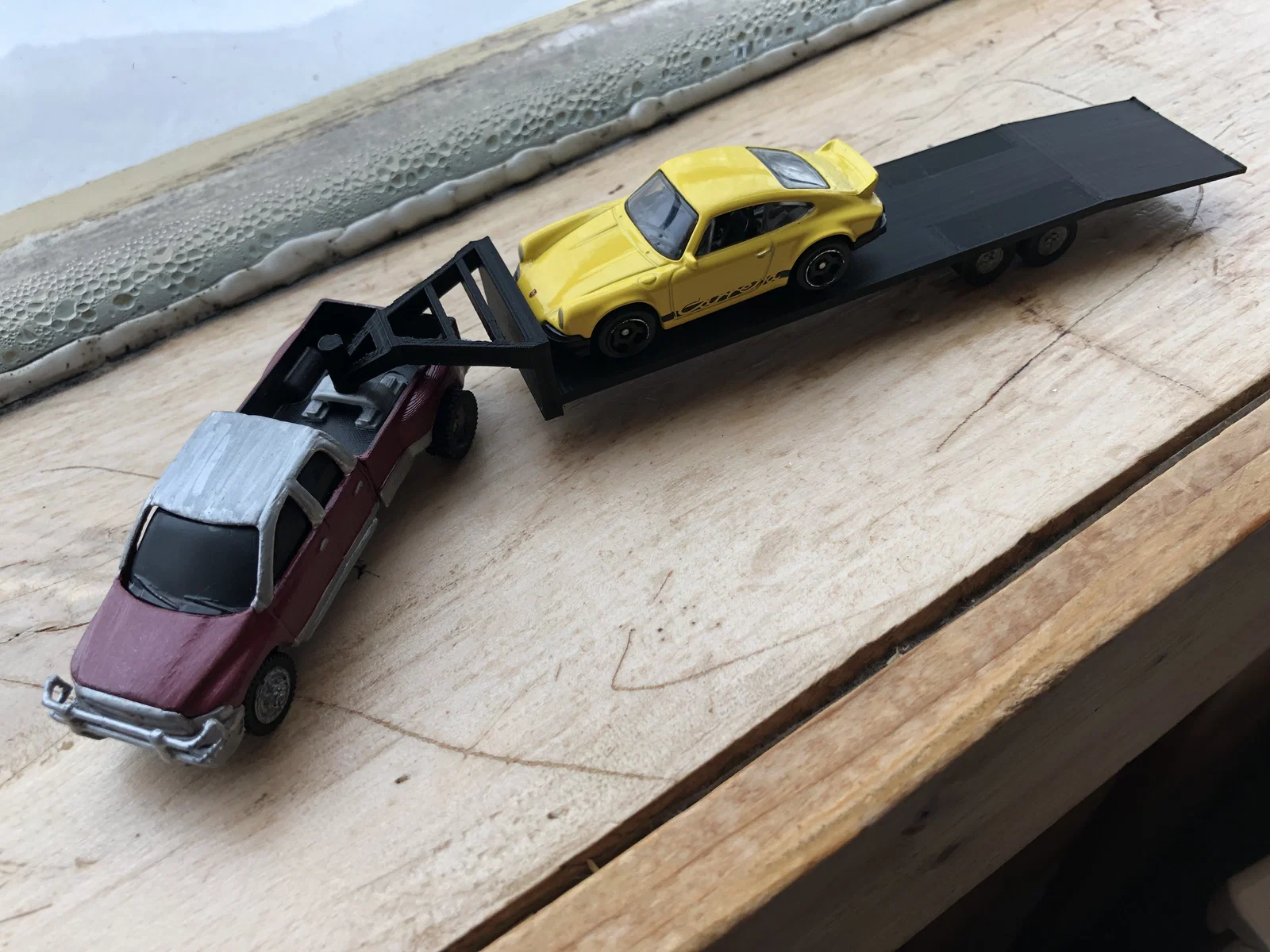 Bộ bánh xe đôi (dually) dành cho mô hình xe kéo Gooseneck. Mình đã in phần xe kéo và bánh xe bằng cách sử dụng rafts, nhưng chỉ cần dùng supports cho phần xe kéo thôi nha. Mình dùng nozzle .2mm với layer height là .14mm. Phần trục bánh xe, giống như tất cả các mô hình Hot Wheels khác của mình, được tận dụng từ kẹp giấy đã nắn thẳng.