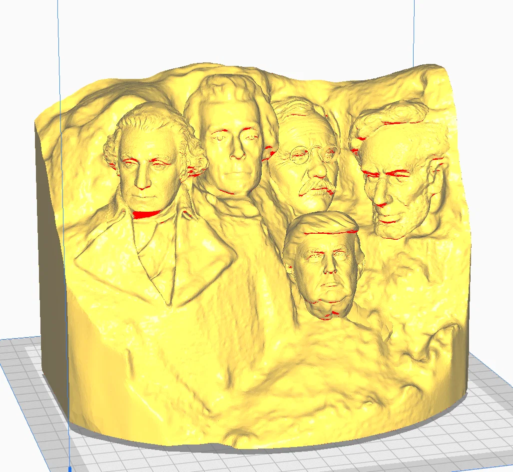 Đây là một mẫu in 3D độc đáo mô phỏng lại hình tượng núi Rushmore nổi tiếng, nhưng có sự xuất hiện đặc biệt của cựu Tổng thống Donald Trump trong hàng ngũ các vị lãnh đạo lịch sử. Sản phẩm này được thiết kế theo phong cách phù điêu nổi, mang lại vẻ ngoài ấn tượng và đầy cá tính cho không gian trưng bày của bạn. Bạn có thể sử dụng mô hình này như một vật phẩm sưu tầm, quà tặng thú vị cho bạn bè hoặc đơn giản là một món đồ trang trí bàn làm việc cực kỳ bắt mắt.