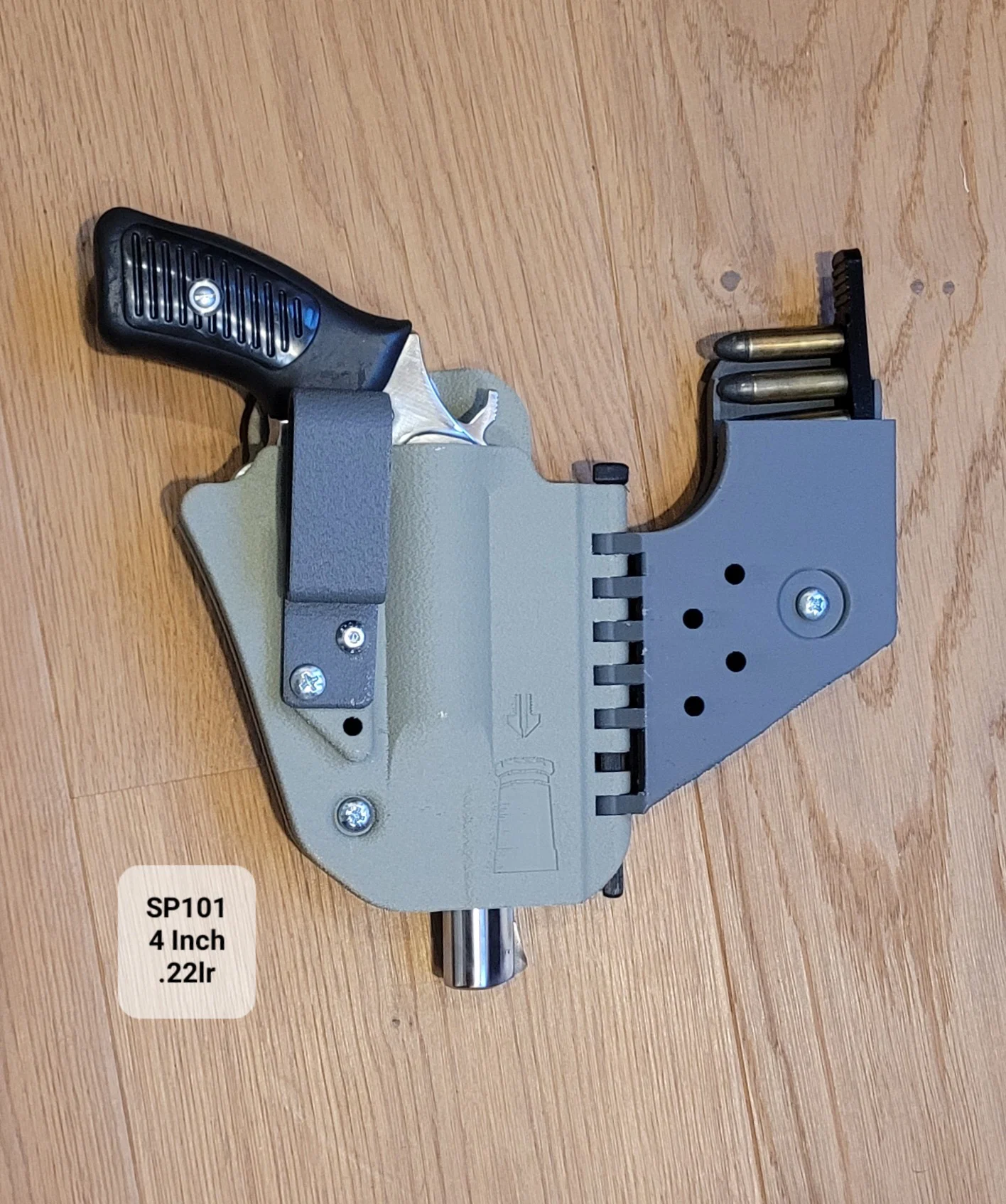 Bao da súng ngắn Revolver Ruger LCRx 3 inch với hệ thống mô-đun linh hoạt, lấy cảm hứng từ TREX ARMS Sidecar 2.0. Thiết kế cho phép tùy biến phụ kiện, hỗ trợ dùng độc lập hoặc kết hợp với bộ giữ đạn. Hướng dẫn in chi tiết đi kèm.