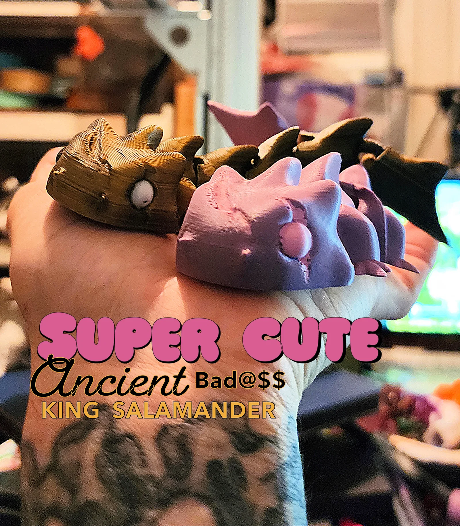 Vua Kỳ Nhông Cổ Đại mang trên mình những vết sẹo của việc sống sót qua biết bao thử thách. Việc mất đi con mắt trái đã giúp ông mở ra một con mắt khác để thấy được sự thông thái và tầm nhìn đáng kinh ngạc. Đây chỉ là một ví dụ trừu tượng về những vết sẹo mà chúng ta để lại trên thế giới này, và cách vạn vật phải thích nghi để tồn tại trước sự vô trách nhiệm của con người. THÊM VÀO ĐÓ, ông ấy cực kỳ dễ thương, phong thái điềm tĩnh cùng khả năng cử động khớp mạnh mẽ và rất thú vị!