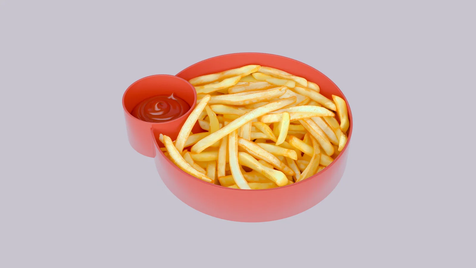Bạn là tín đồ của món khoai tây chiên giòn rụm nhưng lại cảm thấy phiền phức khi phải dùng quá nhiều chén đĩa cho nước chấm? Mẫu thiết kế khay 3D này chính là giải pháp hoàn hảo dành cho bạn. Với thiết kế thông minh tích hợp sẵn một ngăn nhỏ riêng biệt, bạn có thể dễ dàng đựng tương ớt, tương cà hoặc bất kỳ loại sốt yêu thích nào ngay cạnh phần khoai tây chiên mà không cần lo lắng về việc đổ vỡ hay mất vệ sinh khi bày biện bàn ăn.
