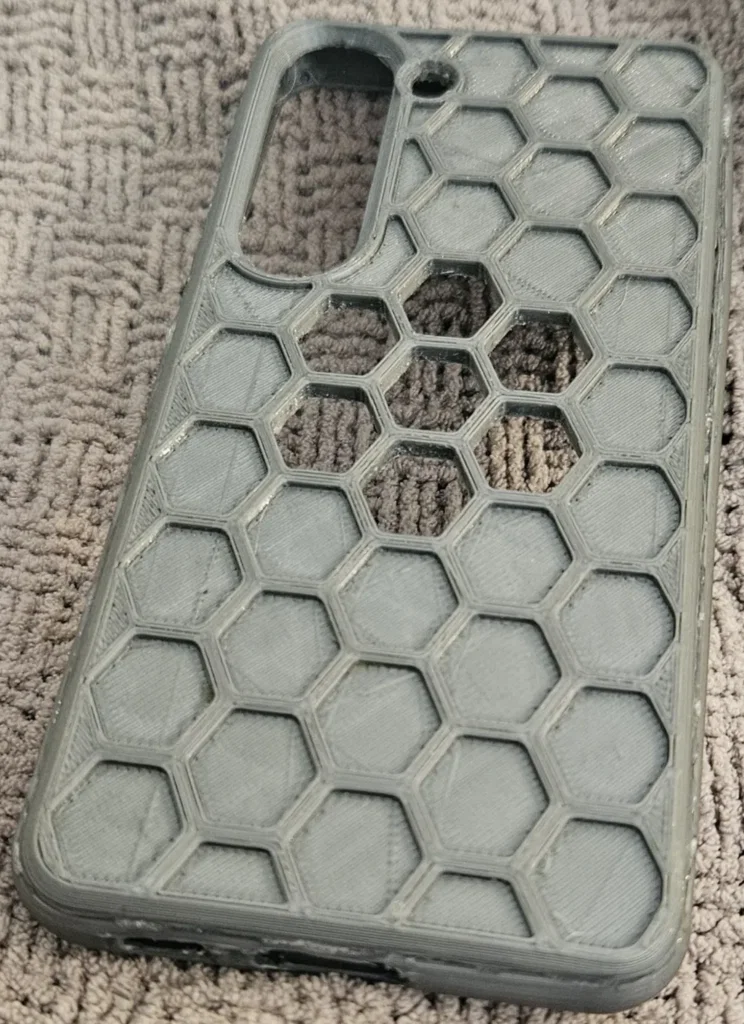 Mẫu ốp lưng Samsung Galaxy S23 với thiết kế tổ ong độc đáo. Sản phẩm được tối ưu hóa để in bằng nhựa dẻo TPU, giúp bảo vệ điện thoại tốt hơn. Tham khảo thêm phiên bản gốc của thiết kế này tại đường link mình đã chia sẻ nhé!