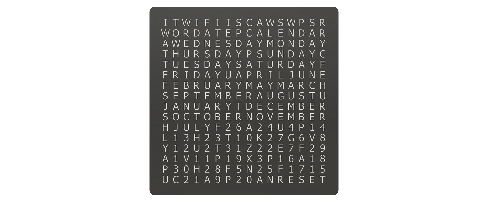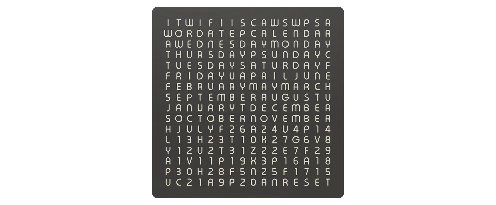 Đây là "phiên bản anh em" của mẫu WordClock 16x16 - 2024 của tôi. Sản phẩm này bổ sung thêm chức năng lịch cho chiếc đồng hồ hiển thị bằng chữ của bạn, một thiết bị mà theo tôi biết thì chưa từng có tiền lệ. =)