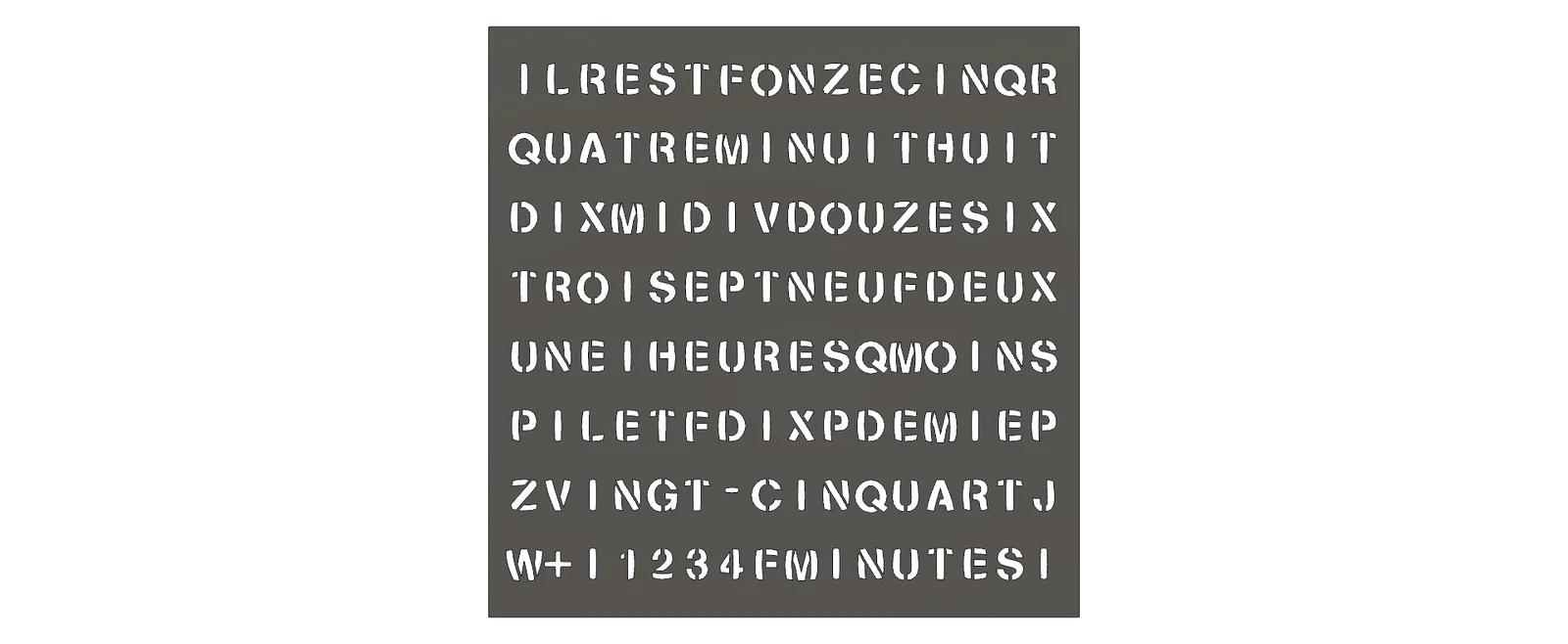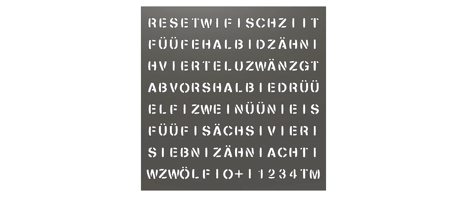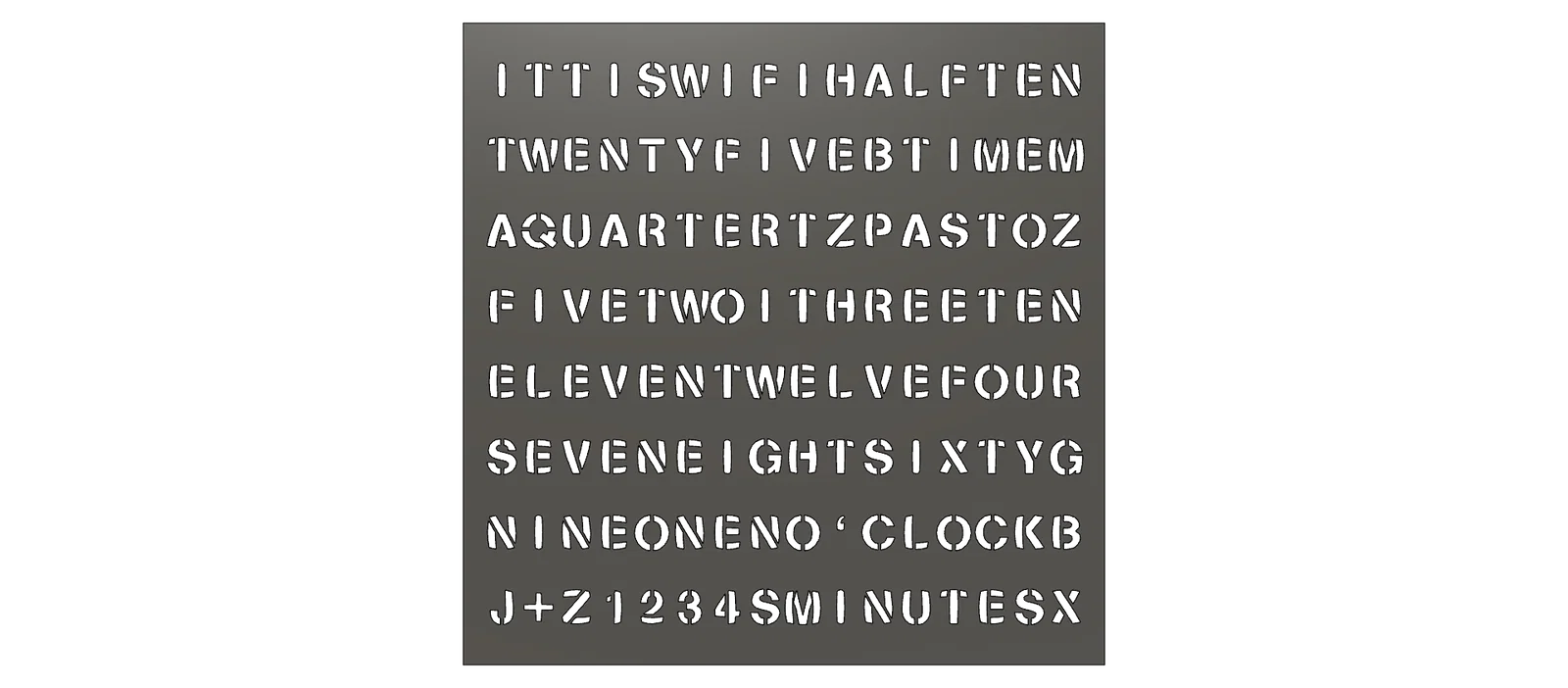 WordClock sử dụng ma trận LED 16x16 và font chữ stencil (dạng khuôn cắt).