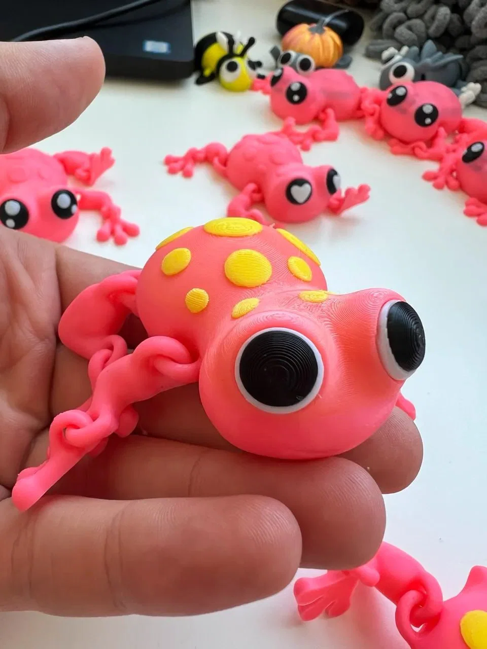 Mô hình chú ếch khớp nối có thể in 3D: thiết kế linh hoạt, cử động được toàn thân và đặc biệt là in liền khối mà không cần hỗ trợ (support). Chú ếch sáng tạo và vui nhộn này có các khớp nối cực kỳ linh hoạt, rất thích hợp để làm đồ chơi, vật trang trí bàn làm việc hoặc phụ kiện giúp giải tỏa căng thẳng (fidget toy). Dễ dàng in ấn mà không cần lắp ráp thêm, đây chắc chắn là một món đồ bổ sung tuyệt vời cho bộ sưu tập các mô hình in 3D độc đáo và tương tác của bạn!