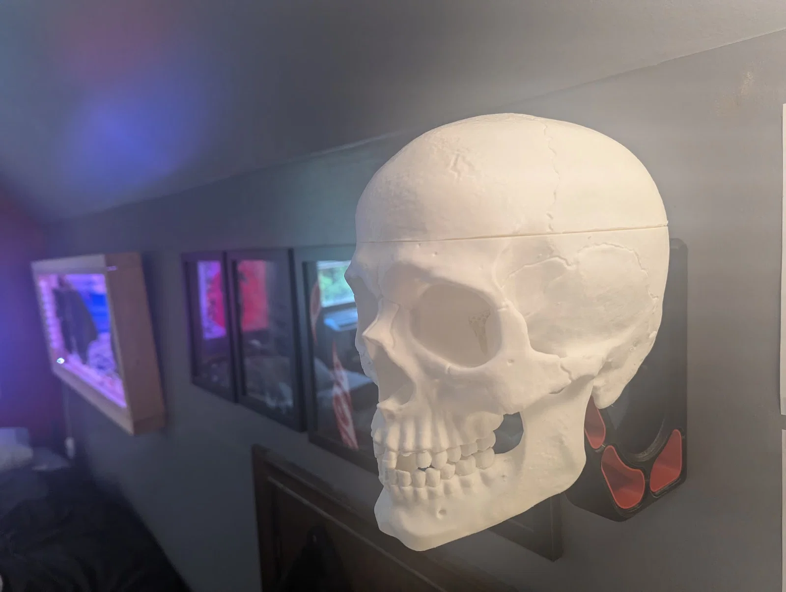 Chào mọi người. Sau khi có người liên hệ về vấn đề bản quyền, mình đã quyết định thay đổi hệ thống giá treo từ mặc định sang thiết kế riêng của mình. Phần giá treo vẫn giữ kích thước hình chữ nhật 40x40mm nhưng đã được thay đổi so với bản gốc. Hệ thống ốc vít và kích thước cũng đã được điều chỉnh lại. Mình đã tích hợp mẫu đầu lâu người từ dự án . Đầu lâu đã được thu phóng để tiệm cận với kích thước thật của đầu người trưởng thành và có sẵn khe cắm để gắn lên giá. Mình khuyên các bạn không nên thay đổi kích thước mô hình trong phần mềm slicer vì sẽ làm hỏng độ khớp của giá treo. Để sản phẩm hoàn thiện đẹp mắt, bạn cần cài đặt layer height thấp. Do mô hình có nhiều chi tiết phức tạp và kích thước lớn, quá trình in có thể mất vài ngày. Bạn bắt buộc phải dùng support cho phần đầu lâu. Mình thấy support kiểu organic hay bị lỗi nên mình chọn dùng Snug support thấy ổn hơn. Cảm ơn @HW0IXCZ và @Otech Michal vì những mô hình tuyệt vời và cảm hứng sáng tạo! Cảm ơn cả những bạn đã giúp mình giải đáp thắc mắc trên r/printables nữa! :D Lời nhắn cuối: Đầu lâu trong ảnh không hoàn toàn giống hệt mẫu mình cung cấp (do mình chọn mẫu gần giống nhất). Việc này do xung đột bản quyền giữa các mô hình. Mình đã đổi sang mẫu đầu lâu có cùng điều kiện bản quyền với giá treo mũ. Dù có một vài chi tiết khác biệt nhỏ nhưng nhìn chung nó vẫn mang lại hiệu ứng như mình mong đợi. Cả hai mẫu đều có đủ răng nhưng do lỗi in ấn nên ảnh chụp bị thiếu 2 cái răng. Mình thấy cũng không sao, thậm chí còn thấy nó ngầu hơn. :)