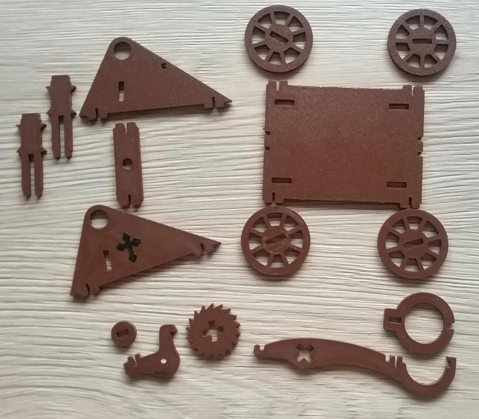 Các bộ phận của máy bắn đá có thể lắp khớp với nhau. Để tăng độ chắc chắn, bạn nên dùng thêm keo dán sắt hoặc bắt vít cố định từng phần lại.