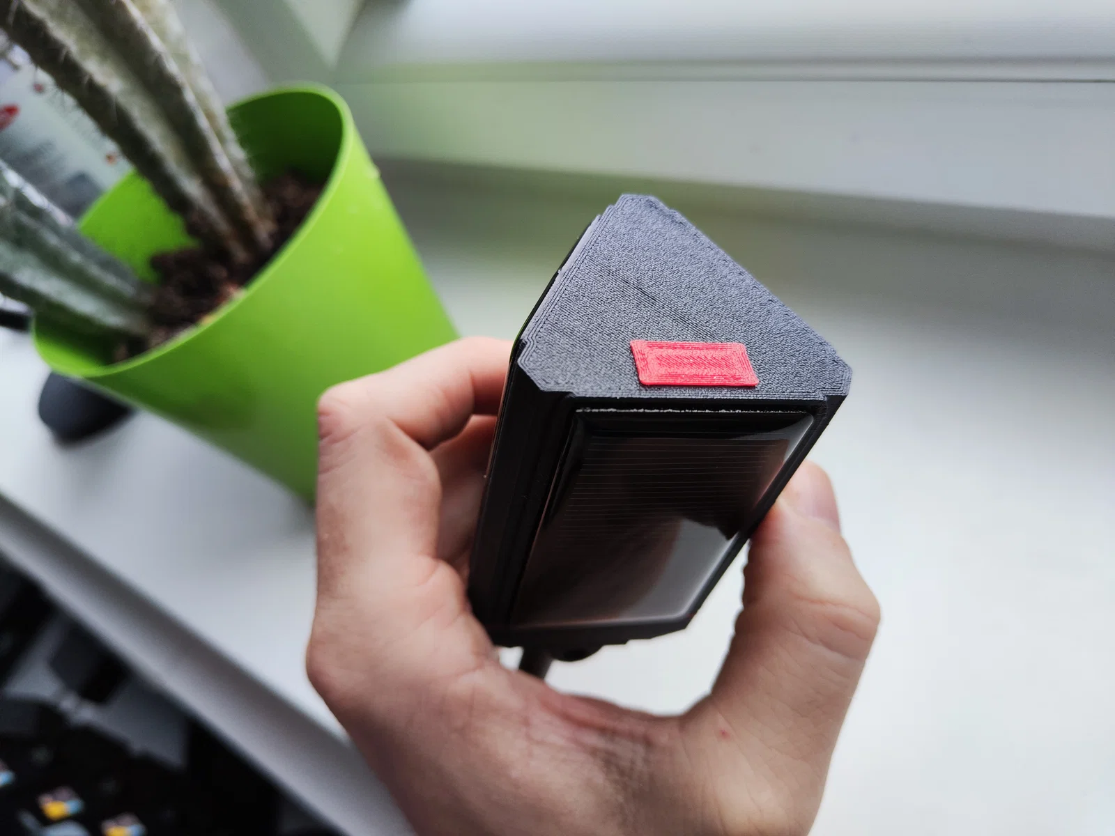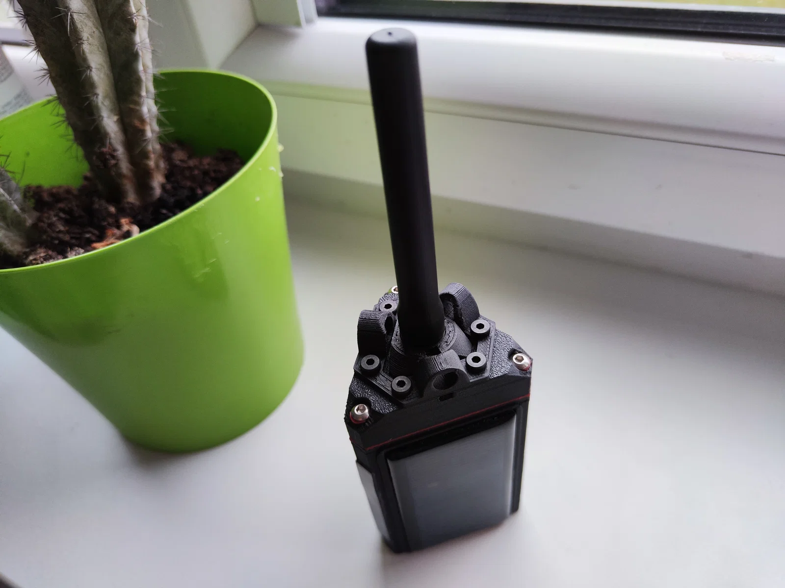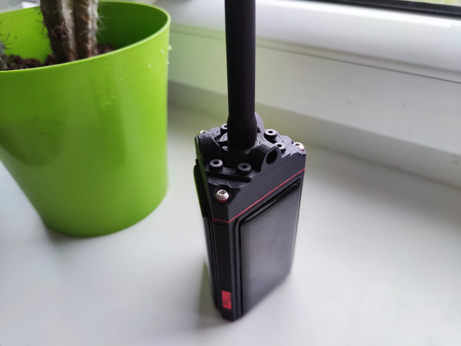Các seal TPU (in màu đỏ trong hình) đặt vào 3 ốc vít phía trên nắp, seal lục giác đặt vào lỗ xuyên ăng-ten SMA bên trong nắp, seal hình tam giác lớn đặt giữa nắp và thân chính.