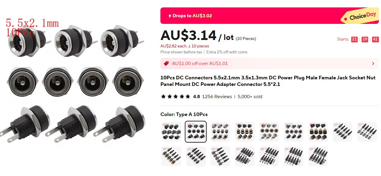 3. 1x Giắc cắm DC cái (DC Connectors 5.5x2.1mm)