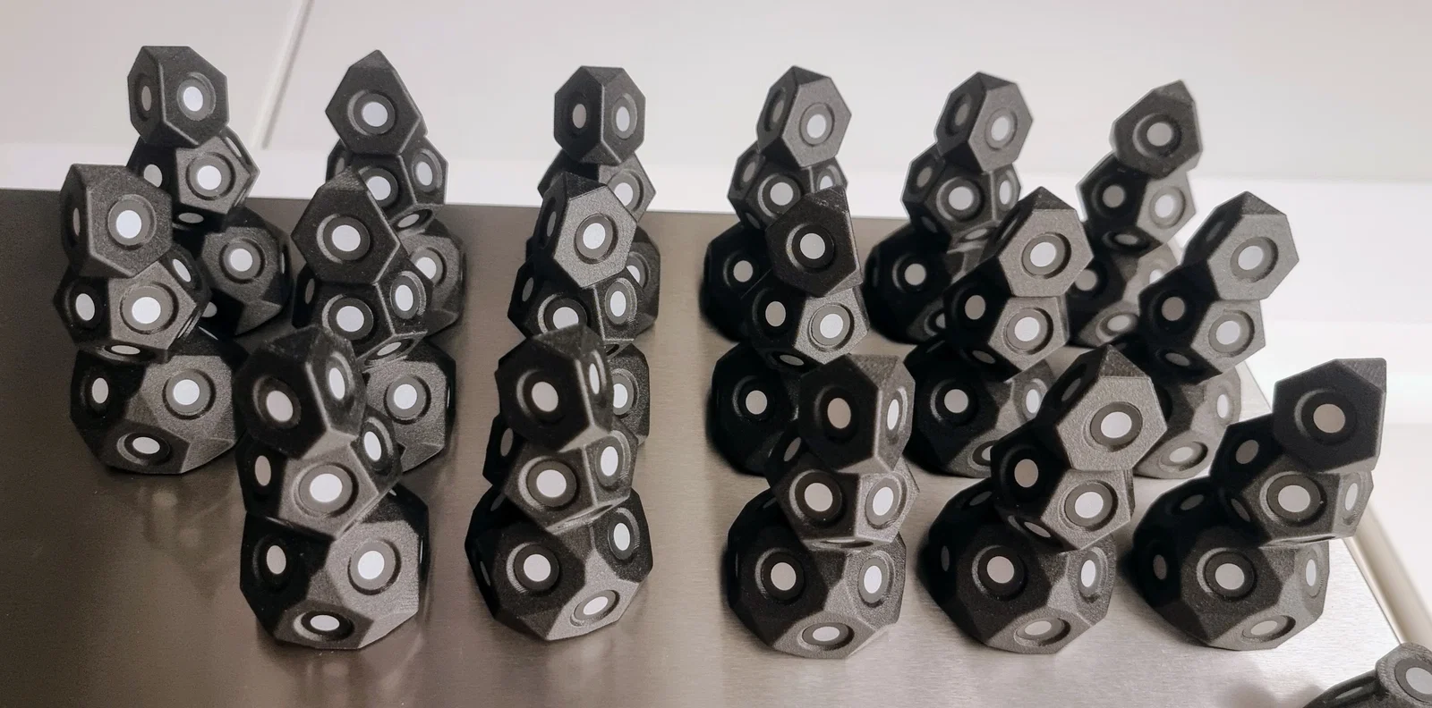 Bộ tháp marker đa diện được sắp xếp để phá vỡ tính đối xứng trên trục xoay, đi kèm đế nam châm tiện lợi. Thiết kế tối ưu cho việc quét 3D, hỗ trợ marker 6mm và các ốc cấy nhiệt M4 tiêu chuẩn.