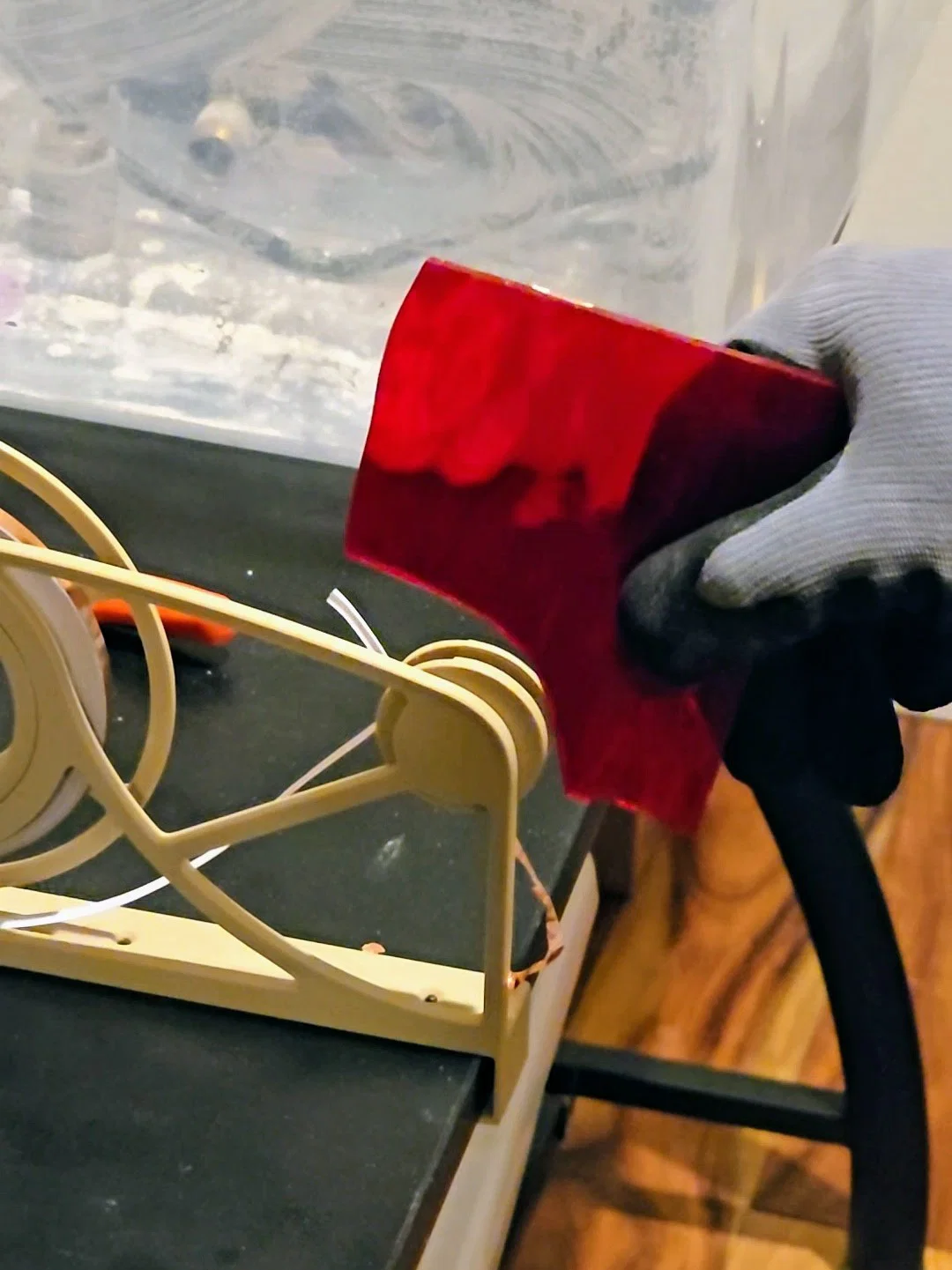 Cái dụng cụ dán băng keo đồng (foiler) cho kính màu được in 3D này giúp việc dán băng keo đồng trở nên đơn giản hơn nhiều. Thiết kế này được lấy cảm hứng từ , với kiểu dáng tinh gọn và không cần dùng đến ốc vít hay phụ kiện kim loại. Mô hình sử dụng ren vặn in 3D và bánh dẫn hướng lắp kiểu press-fit, giúp bạn lắp ráp dễ dàng và dán băng keo chuẩn xác.