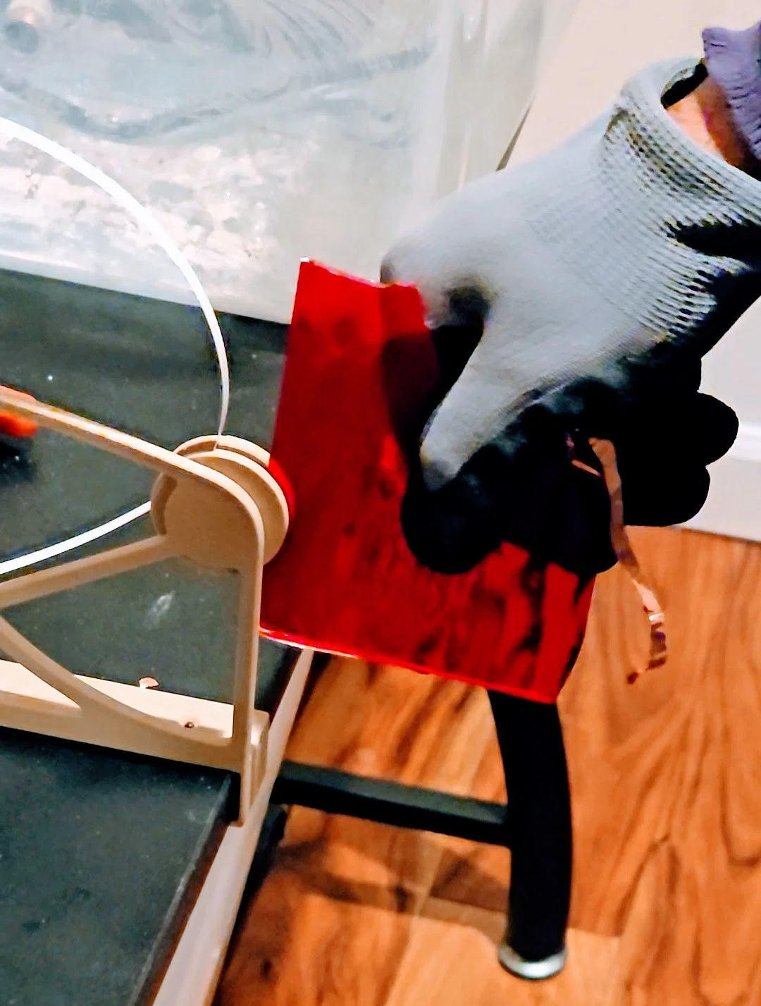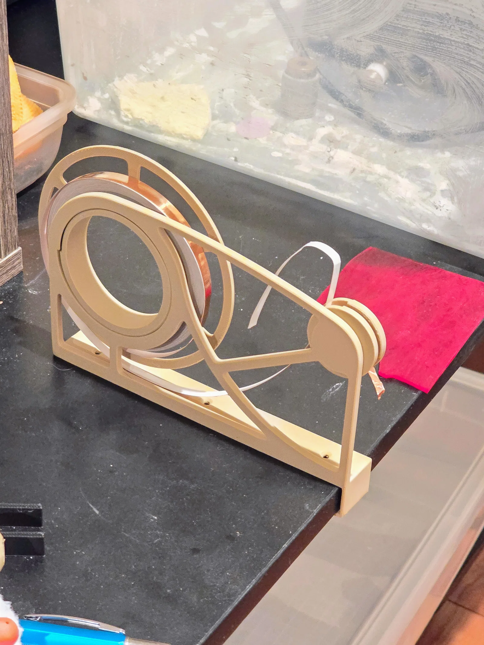 Dụng cụ in 3D chuyên dụng để dán băng keo đồng khi làm kính màu. Thiết kế tinh gọn, lắp ráp dạng press-fit không cần ốc vít, giúp việc dán keo chính xác, dễ dàng và phù hợp với nhiều kích cỡ băng keo khác nhau.
