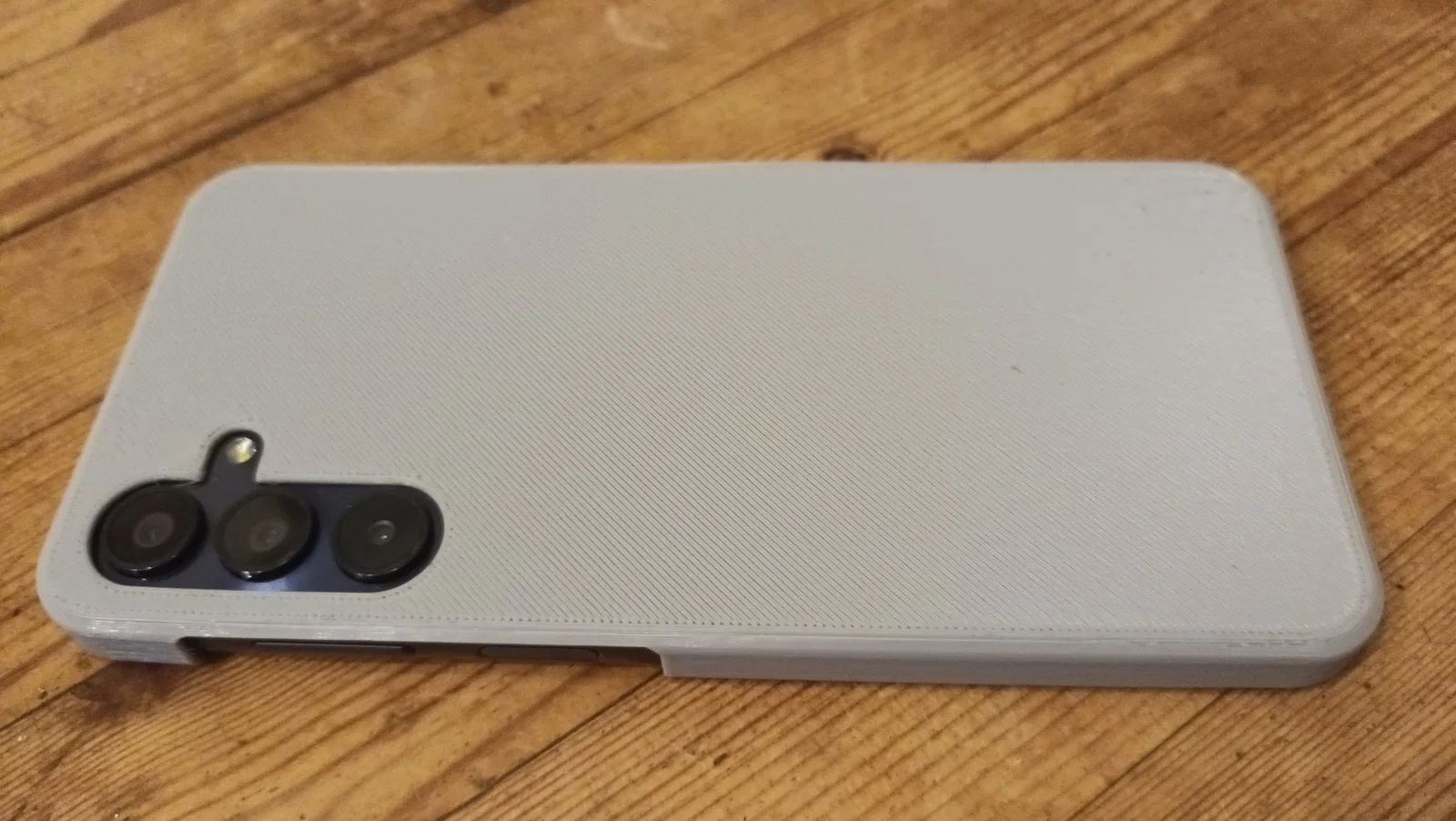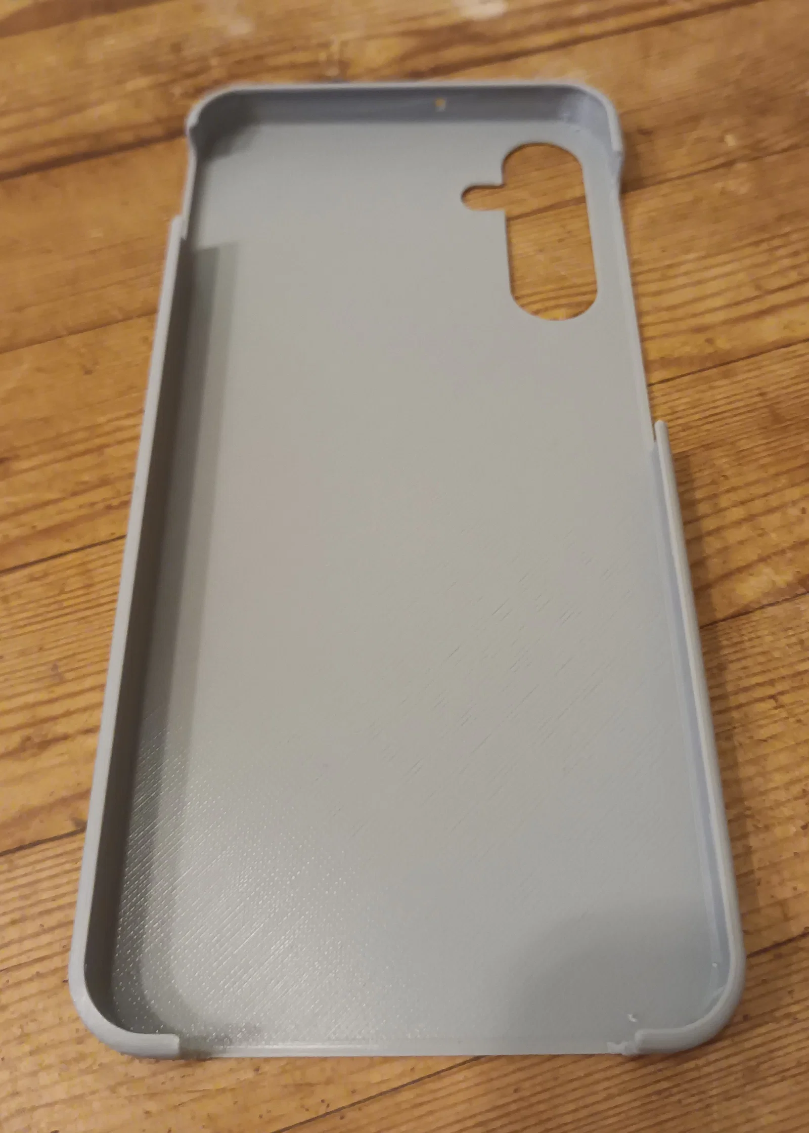 Khuyến khích nên đặt mặt lưng của ốp xuống bàn in khi in. Tuy nhiên, tùy thuộc vào cài đặt in mà bạn chọn, phần bo tròn ở mặt dưới gần bàn in có thể cần phải xử lý lại một chút. Bạn có thể giảm chiều cao lớp in (layer height) để cải thiện độ chi tiết của hình dạng này.