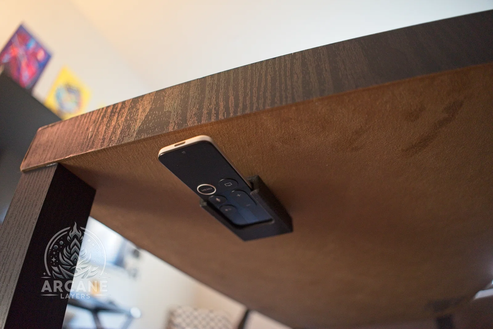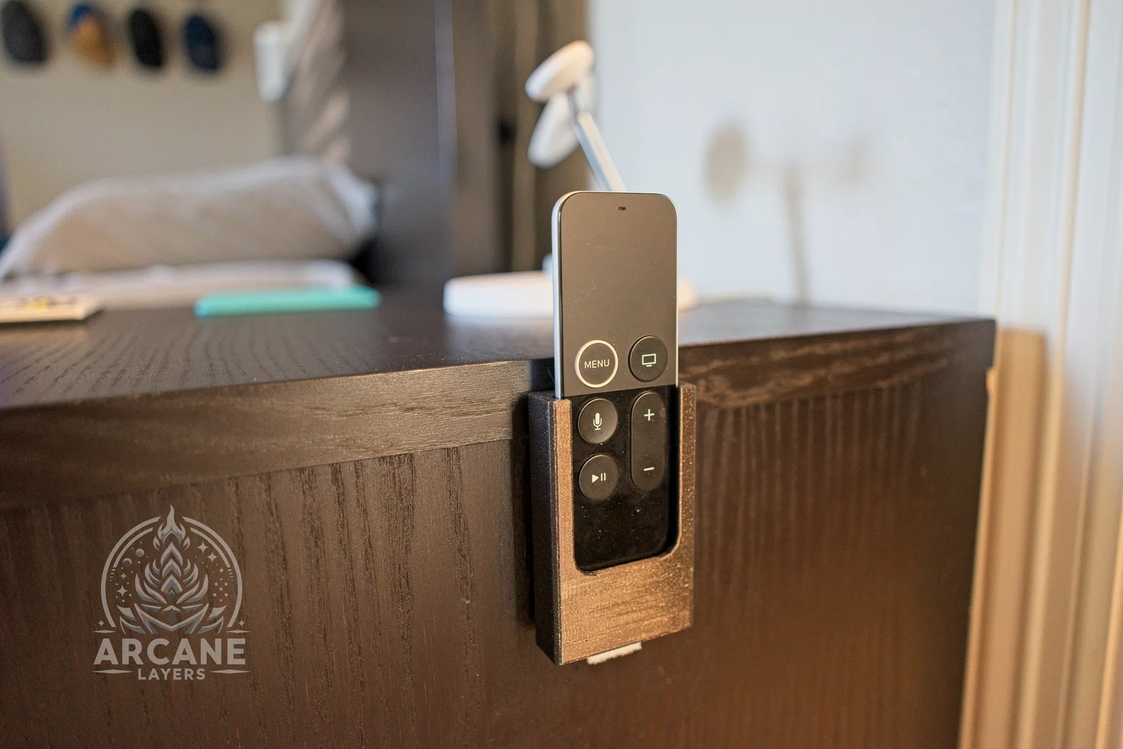 Chào mọi người! Đây là một mẫu thiết kế đơn giản mình làm để giúp bạn gắn chiếc remote Apple TV thế hệ thứ 4 lên cạnh bàn, tường hoặc bất cứ đâu bạn muốn. Mẫu này có hai lỗ bắt vít M4 chìm để bạn có thể vặn vít cố định lên bề mặt. Cá nhân mình thì dùng miếng dán velcro Command¹ và nó giữ rất chắc chắn, không gặp vấn đề gì cả.