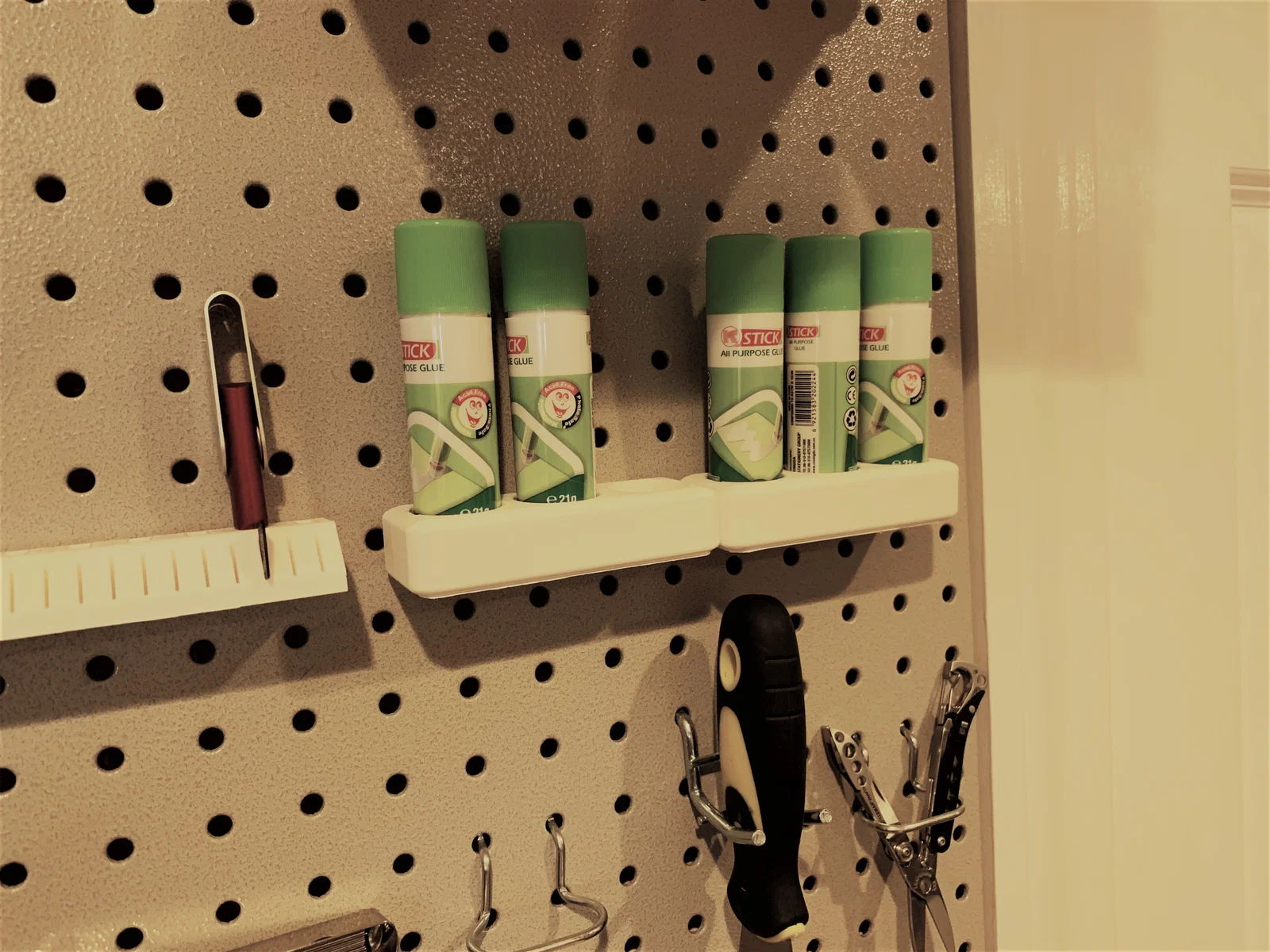 Đây là giá đỡ đơn giản cho thỏi keo dán dùng trên bảng pegboard (khoảng cách lỗ 1 inch).
