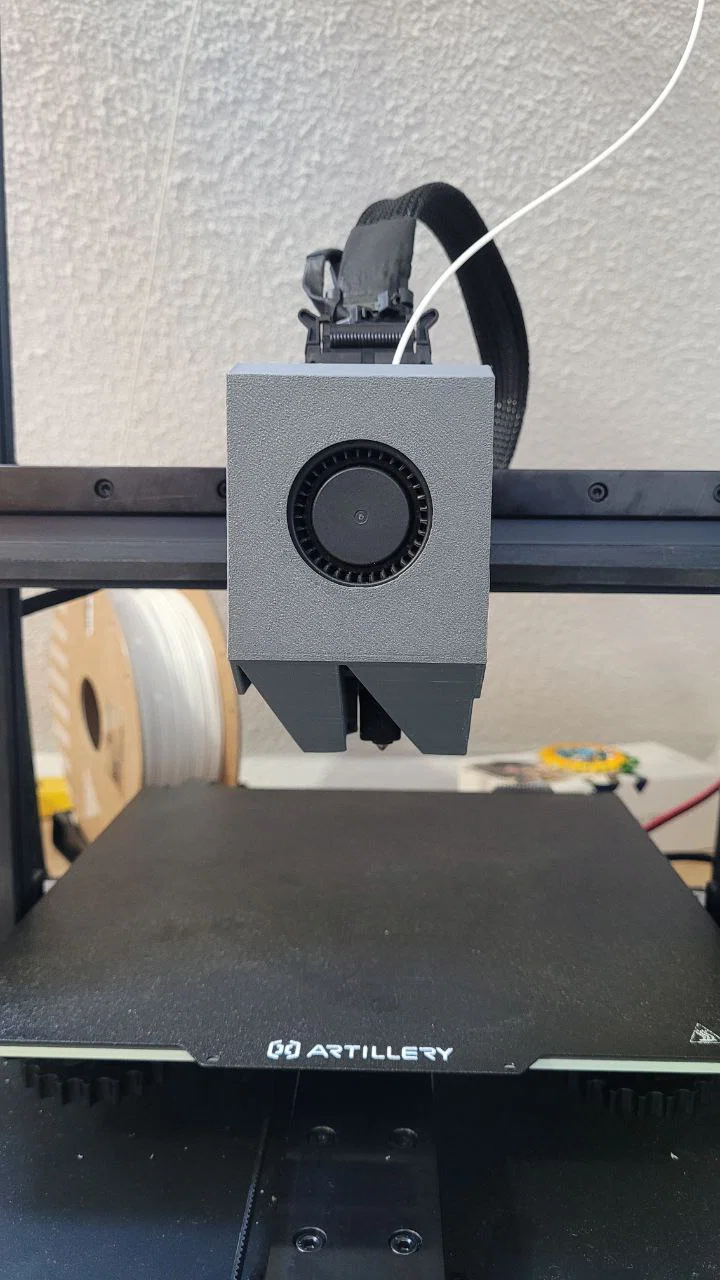 Cập nhật ngày 22-12-2024: Đã thêm file STEP. Đây là giá đỡ đầu in mới dành cho Artillery X4 Pro và Plus. Thiết kế này vẫn giữ nguyên khả năng tương thích với vỏ đầu in gốc, nhưng loại bỏ cảm biến tiệm cận cũ và thay thế bằng cảm biến Microprobe V2. Tôi có đính kèm vỏ đầu in đã chỉnh sửa từ phiên bản trước, không bao gồm giá đỡ microprobe. Vật liệu cần thiết: 13X Đai ốc M3 4X Vít M3x10 (cố định dây đai) 4X Vít M3x8 (cố định bảng interface và bảng LED) 3X Miếng đệm M3x10 (khuyên dùng bằng kim loại để cố định toàn bộ thân đầu đùn) * 4X Long đền M3 hoặc M4 (khuyên dùng để tách đế dây đai 1mm). Lưu ý quan trọng: Hãy tháo các kẹp ở đầu dây đai một cách cẩn thận để tránh làm hỏng chúng! Khuyến khích in bằng nhựa PETG, mật độ lấp đầy (infill) 50%. Tôi có đính kèm ảnh lắp ráp thực tế. Bạn có thể tận dụng lại các vít cũ của động cơ đầu đùn, giá đỡ dây cáp và thanh trượt tuyến tính. Hướng dẫn cài đặt Microprobe V2 (thay đổi giá trị X_offset và Y_offset trong cấu hình Probe): x_offset: -19, yoffset: 21. https://github.com/CiareCw455/Microprobe-V2-artillery-x4-pro-plus?tab=readme-ov-file. Dự án đã lắp ráp và thử nghiệm thành công, tuy nhiên có thể sẽ có cải tiến trong tương lai. Công lớn thuộc về @Carlos A.D. từ nhóm Telegram “soporte artillery X4” vì đã chia sẻ bản vẽ đầu in này! Cảm ơn anh ấy!_