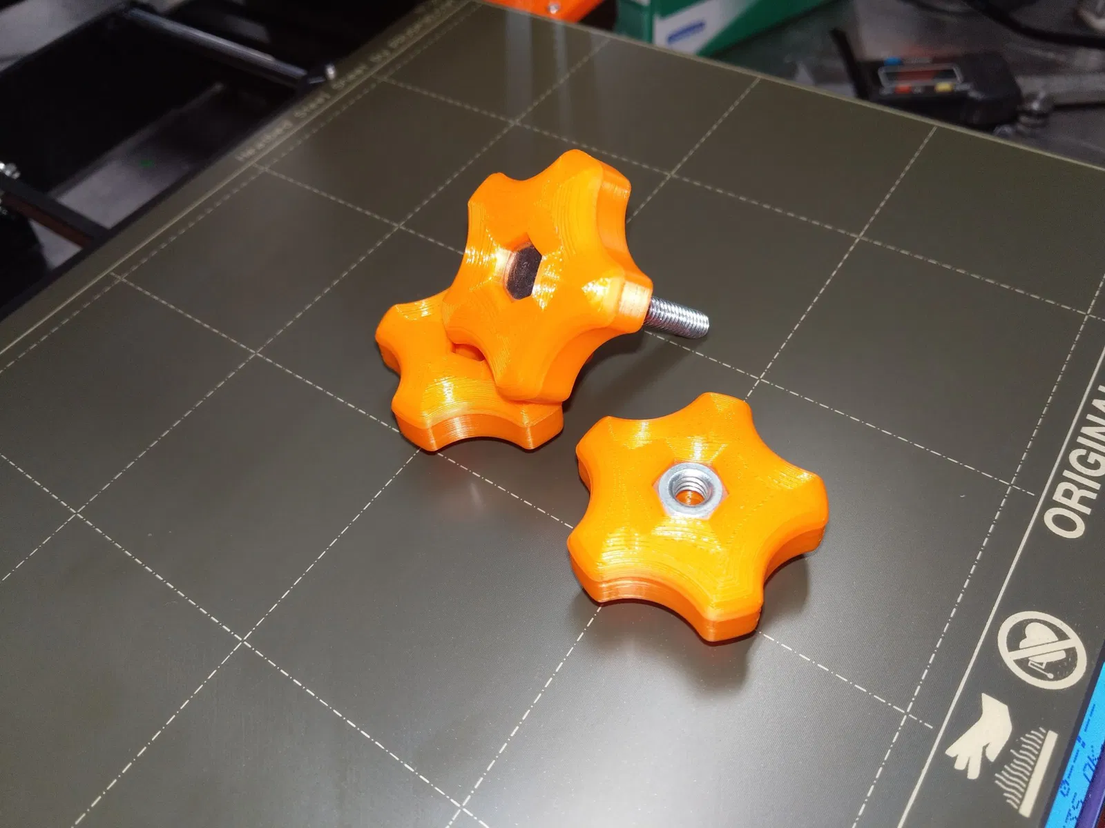 Những núm này được thiết kế để có độ vừa chặt cho đai ốc hoặc bu lông sử dụng, vì vậy chúng không bị trượt ra trong quá trình sử dụng. Tôi đề xuất sử dụng một đai ốc và bu lông phù hợp để kéo đầu núm hoặc bu lông vào khe của núm.