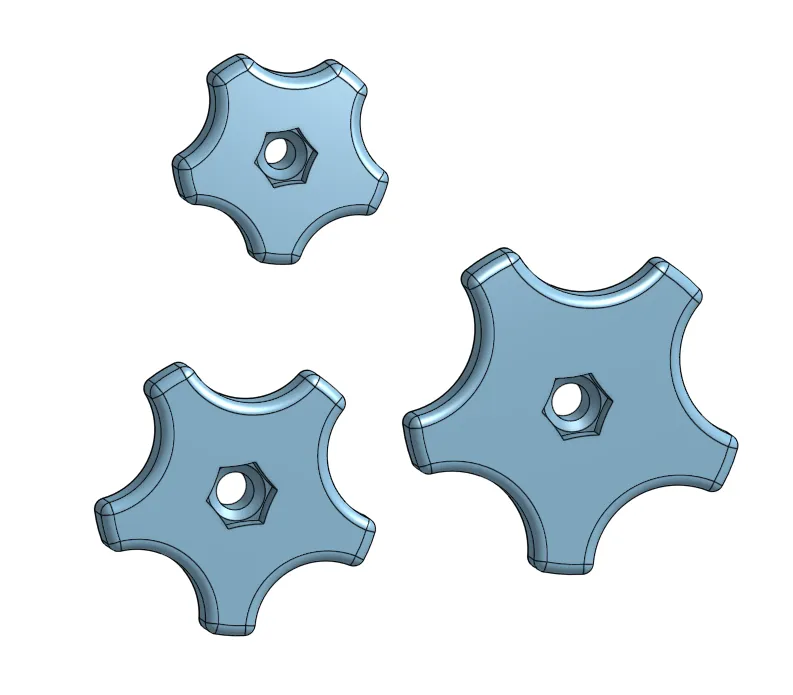 Hệ thống đo lường mét rất tuyệt, nhưng đôi khi bạn cần một phiên bản dựa trên inch. Những núm này dành cho các bu lông hoặc đai ốc 1/4 inch và 5/16 inch, và có thể được sử dụng ở cả phiên bản đực hoặc cái với phần cứng bổ sung phù hợp (như được hiển thị trong các bức ảnh).