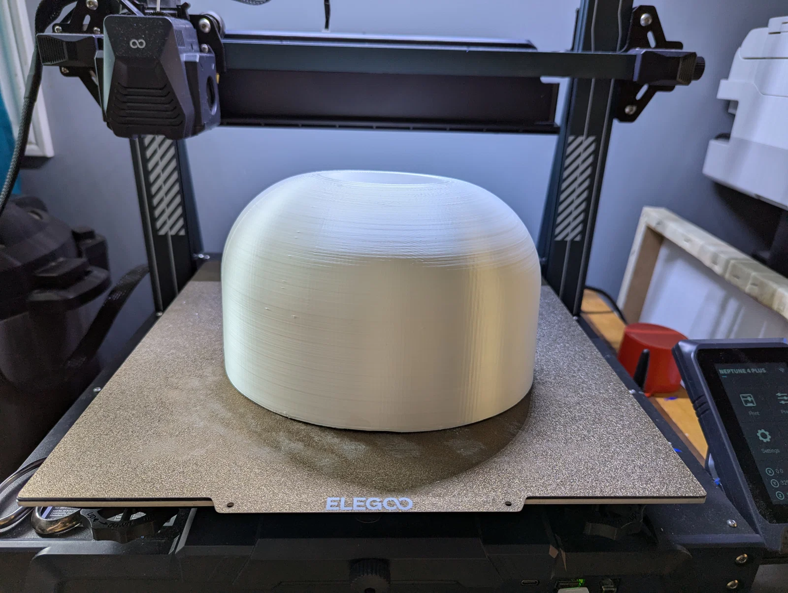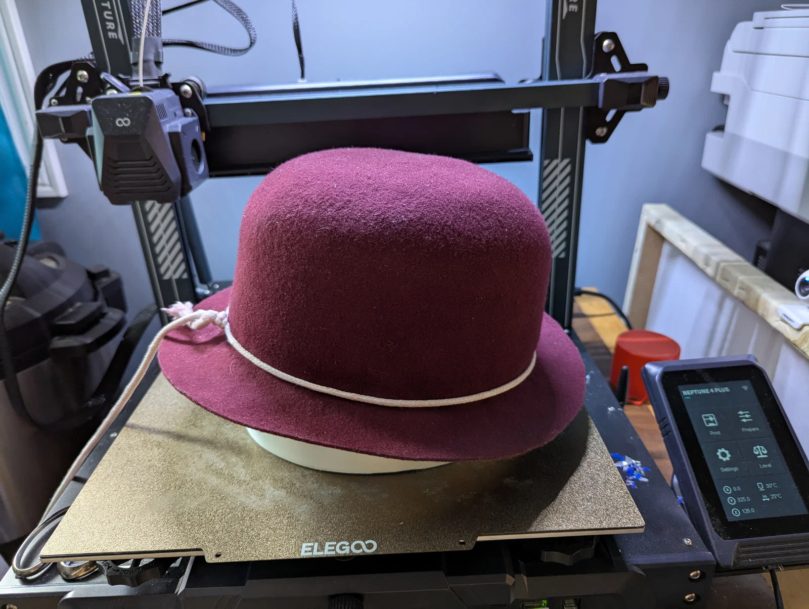 Đây là mẫu khuôn làm nón (hat block) kiểu open crown cao 5 inch (khoảng 12.7cm), dành cho cỡ đầu 60cm tương đương size 7 1/2. Ở giữa khuôn có một lỗ trống để gắn lên giá đỡ. Bạn nên in rỗng với số lượng tường và lớp trên/dưới dày dặn, sau đó khoan một lỗ nhỏ ở đáy và đổ đầy mút xốp hoặc thạch cao vào bên trong để tăng độ cứng cáp và khả năng chịu nhiệt. Khuôn này được tạo hình dựa trên kích thước đầu của riêng tôi, nhưng nếu bạn đội cùng cỡ nón thì khả năng cao là nó cũng sẽ vừa với bạn. Tôi cũng đã đính kèm thêm một mẫu khuôn open crown cao 6 inch, rất phù hợp cho các loại nón kiểu cao bồi có nếp gấp sâu hoặc các kiểu nón có chóp rất cao.