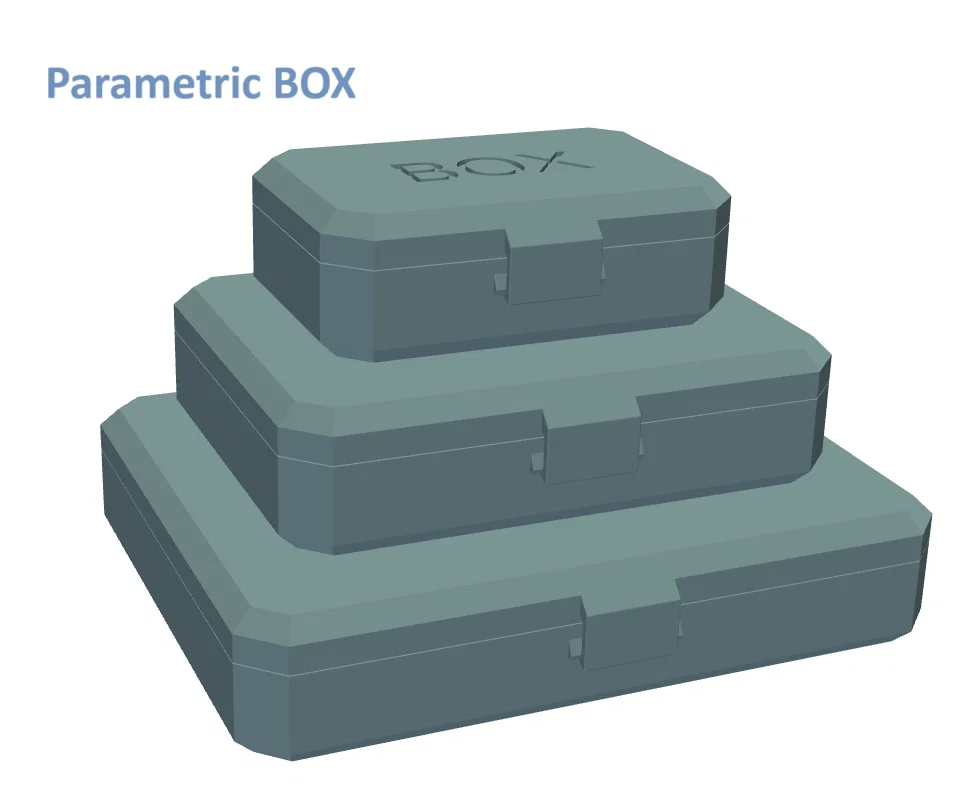 Mẫu hộp được thiết kế theo dạng tham số bằng CadQuery với đặc điểm thành mỏng, có tích hợp sẵn bản lề và khóa. Mẫu in nhanh, tiết kiệm nhựa, hỗ trợ tùy chỉnh thông số trực tiếp qua Google Colab để tạo ra kích thước hộp theo ý muốn của bạn.