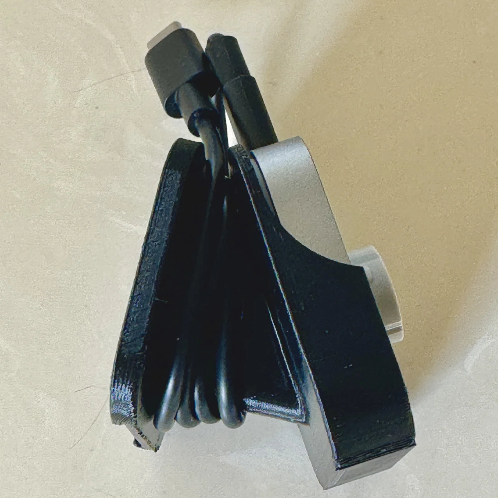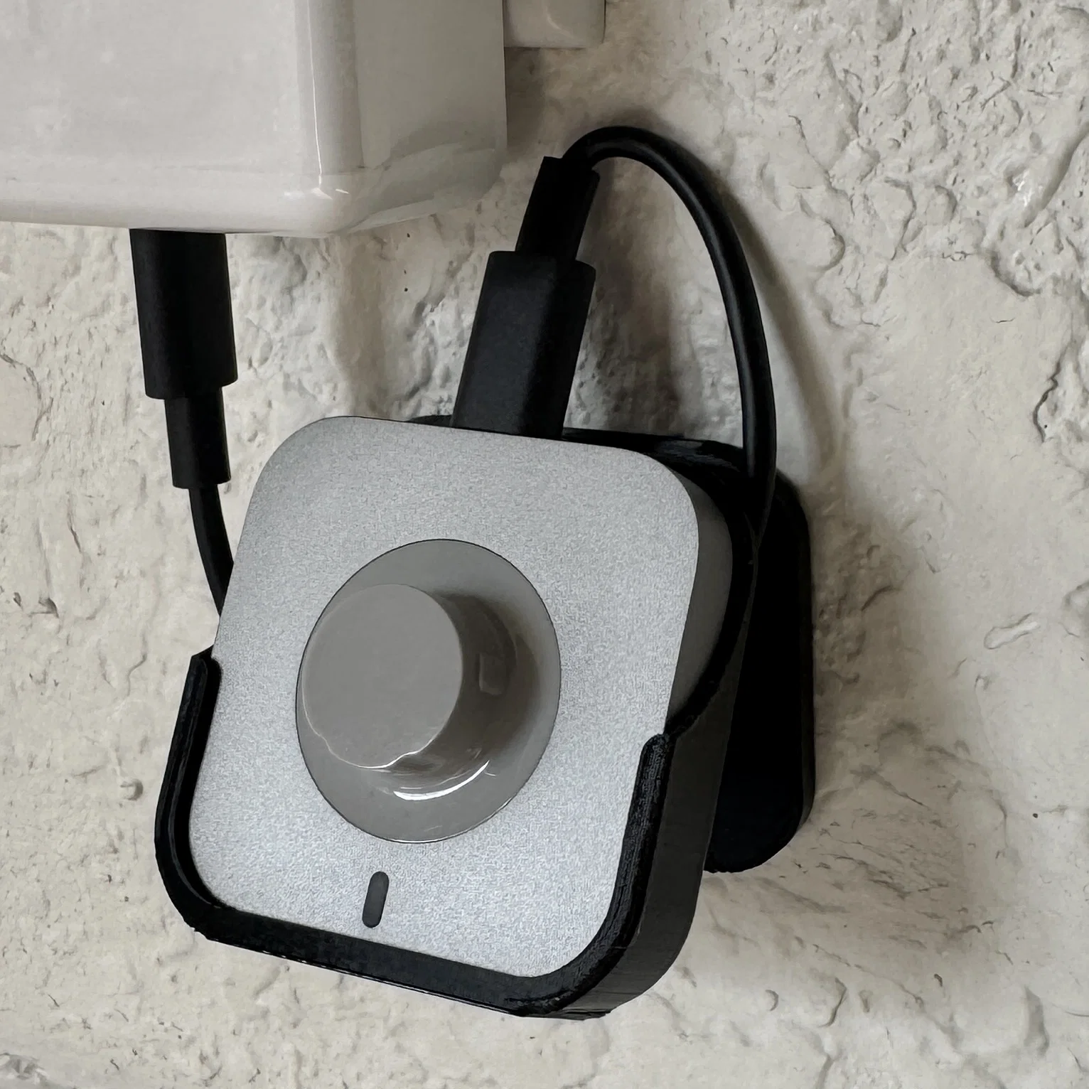 Vợ mình vừa mua chiếc nhẫn Oura Gen 4 mới và muốn để nó trong phòng tắm, nhưng mình lại không muốn nó chiếm diện tích trên mặt bàn. Thế là mình đã thiết kế cái giá treo sạc gắn tường đơn giản này. Thiết bị sử dụng một tấm đế gắn tường để giấu đi các con ốc vít, đồng thời có các trụ đỡ giúp bạn có thể quấn dây cáp gọn gàng ở phía sau bộ sạc.