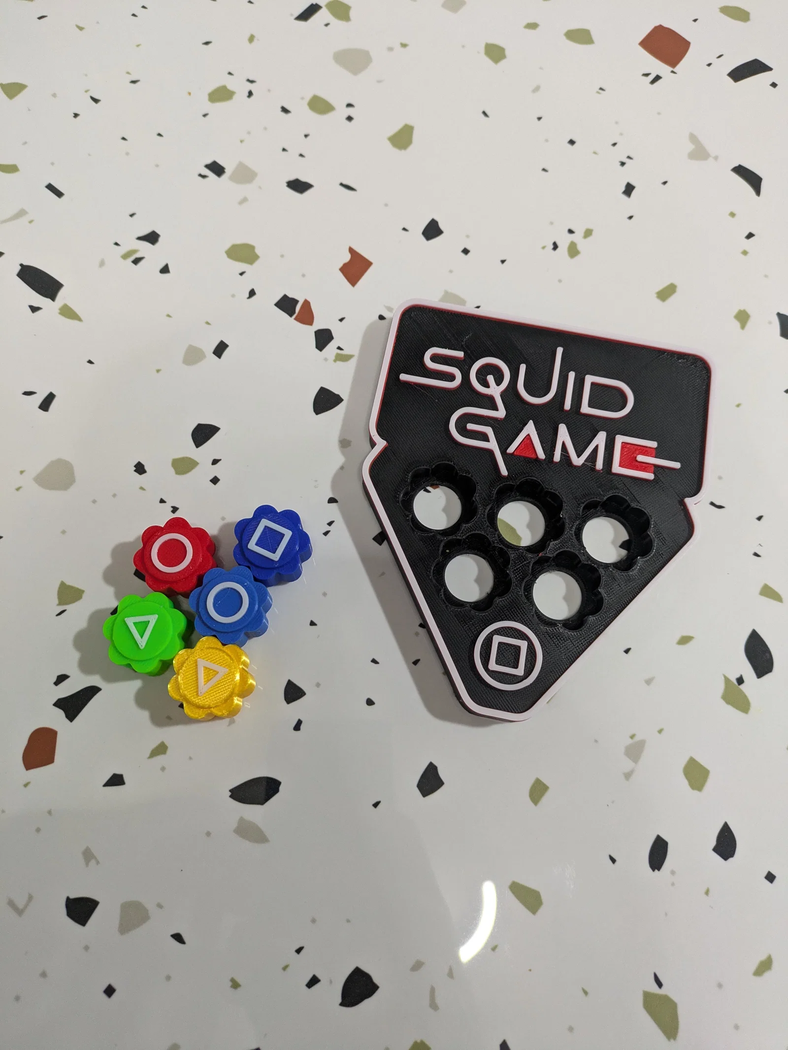 Bạn là một fan hâm mộ của bộ phim đình đám Squid Game và muốn sở hữu một món đồ chơi độc đáo tái hiện lại không khí trong phim? Mẫu in 3D này chính là bộ Gonggi (một trò chơi truyền thống của Hàn Quốc) được thiết kế lại dựa trên các biểu tượng mang tính biểu tượng của Squid Game. Bộ sản phẩm bao gồm một tấm bảng nền có logo thương hiệu với các khe cắm vừa vặn và các miếng token nhỏ với hình dáng tròn, vuông, tam giác đặc trưng. Đây không chỉ là món đồ trang trí đầy tính nghệ thuật cho bàn làm việc của bạn mà còn là một bộ trò chơi thú vị để giải trí cùng bạn bè.