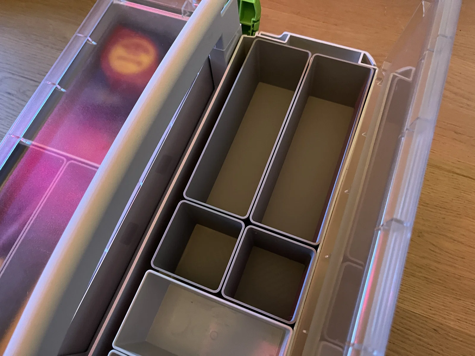 Bộ khay tổ chức đồ nghề dành cho thùng Festool SYS-StorageBox (và các dòng tương đương của Tanos). Thiết kế được tinh chỉnh với dung sai chuẩn xác, giúp khay nằm cố định chắc chắn hơn trong thùng.