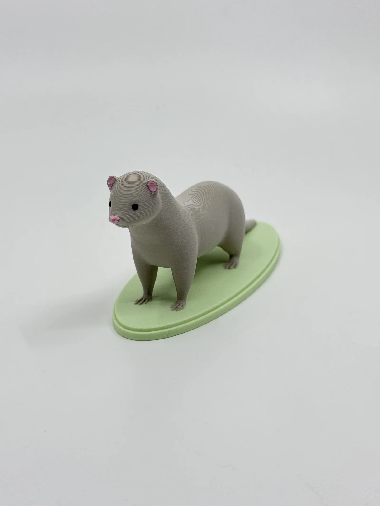 Mô hình chú chồn Ferret được thiết kế cho mục đích giáo dục. Khi in, bạn cần hỗ trợ đầy đủ (chúng mình đã thử nghiệm thành công với ngưỡng overhang 25 độ cùng tính năng tự động tạo tree/organic supports). Các loại nhựa được sử dụng bao gồm: PolyTerra PLA màu Muted White, Mint Green, Sakura Pink và PolyLite PLA màu Black.