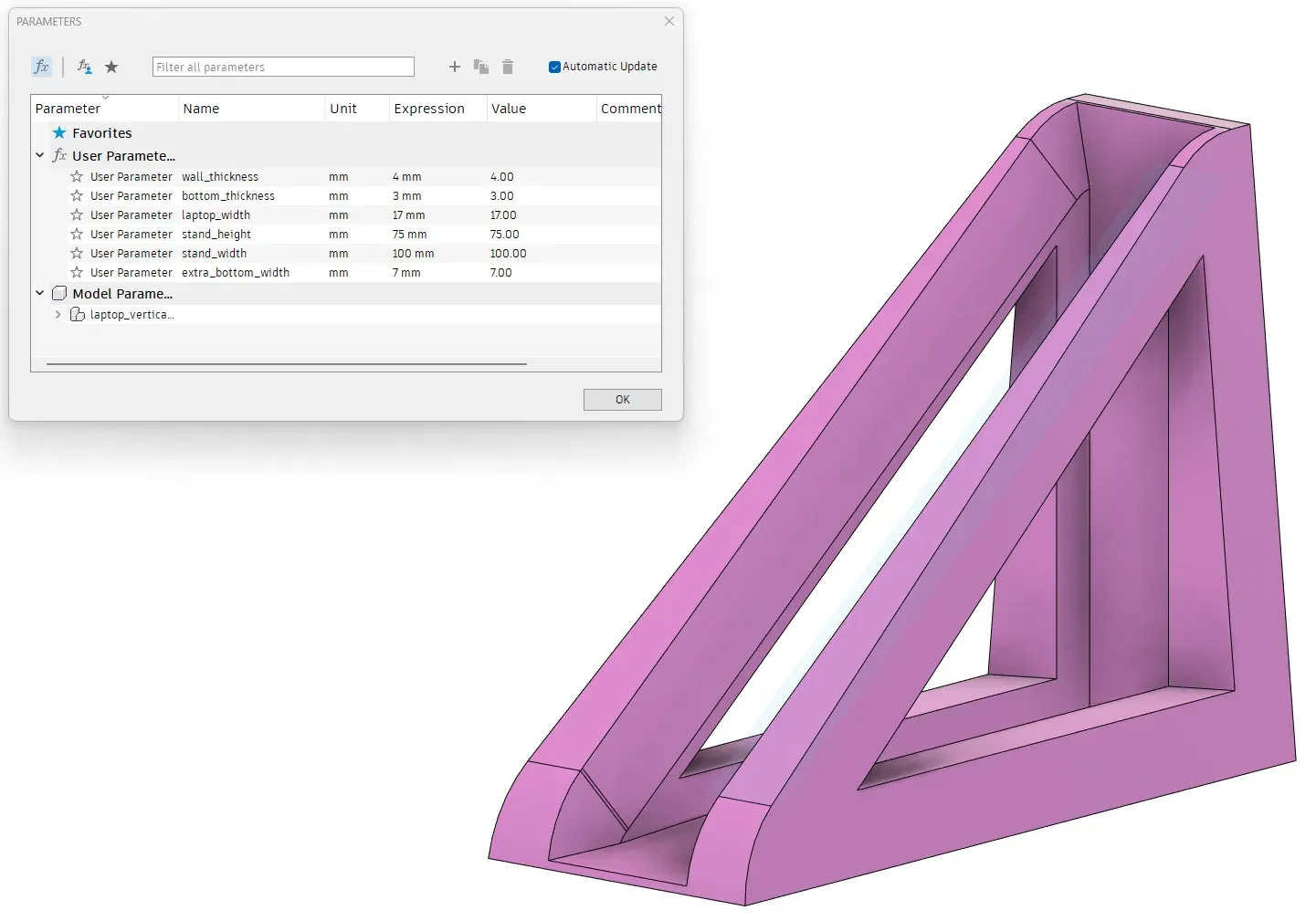 Mô hình F3D được bao gồm để tùy chỉnh với các kích thước laptop khác (chỉ cần chỉnh sửa các tham số).