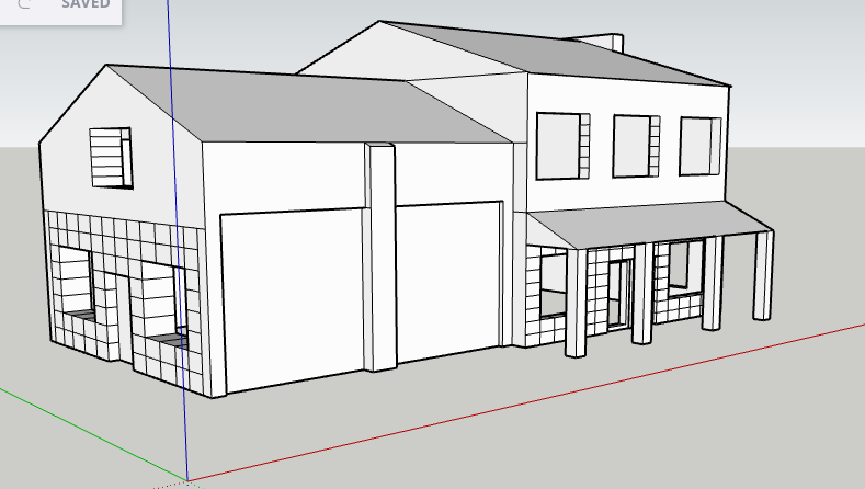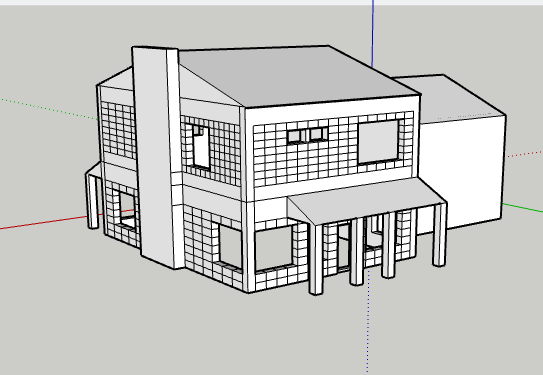 - Chi tiết kiến trúc nổi bật: Hệ thống gara đôi, hiên nhà có cột và tường gạch được thể hiện rõ ràng, tạo độ chân thực cao khi nhìn từ xa.