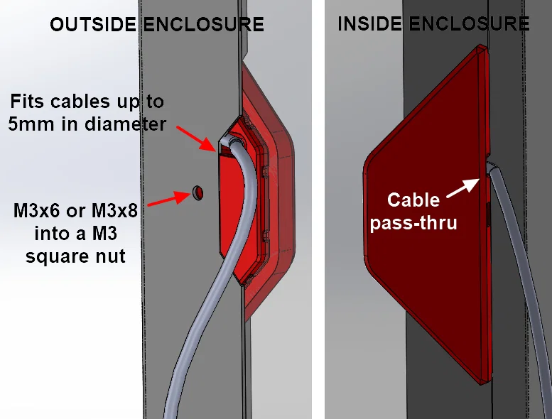 LƯU Ý: Bạn có thể luồn nhiều cáp hơn trên mỗi lỗ nếu chúng nhỏ hơn 3mm, nhưng hãy tự thử nghiệm tùy theo trường hợp thực tế nhé. :-)