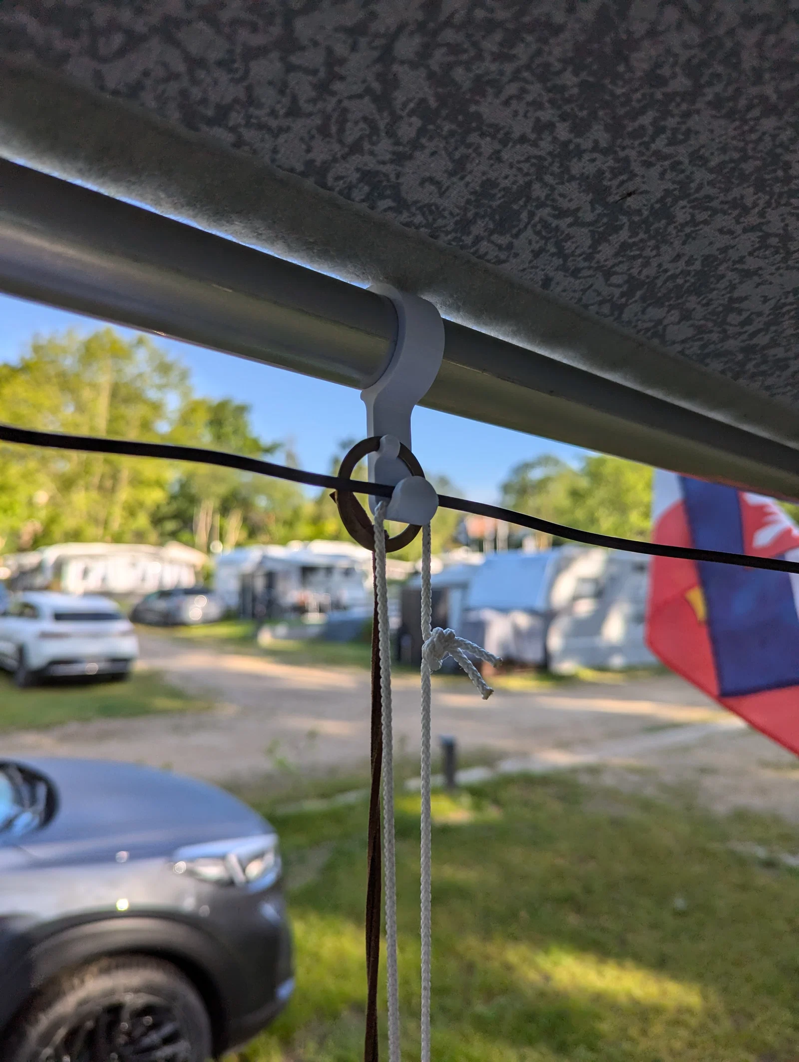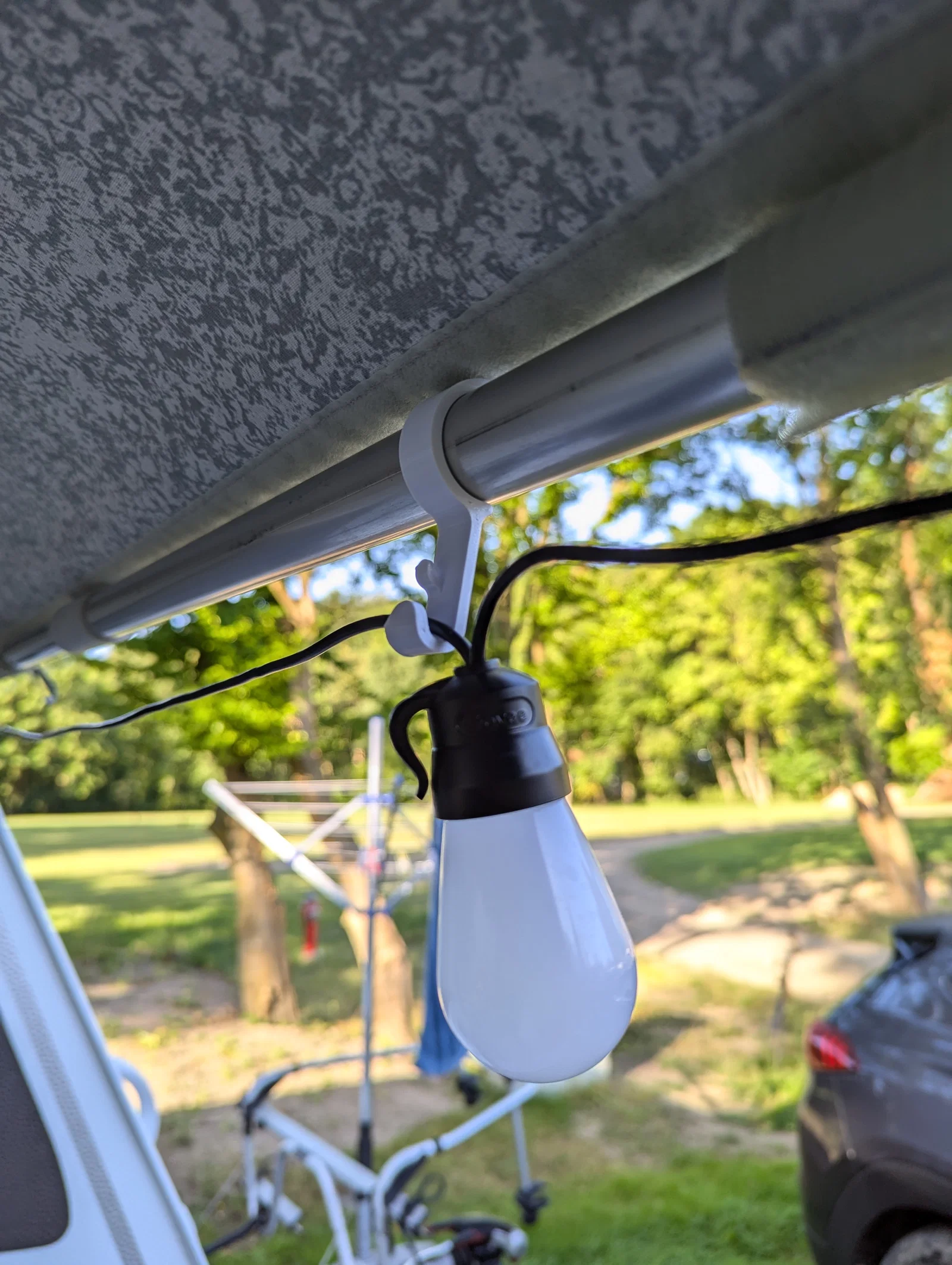 Để treo thêm ít đồ trang trí hoặc dây đèn lên các thanh mái Wigo, mình đã thiết kế ra bộ móc này.