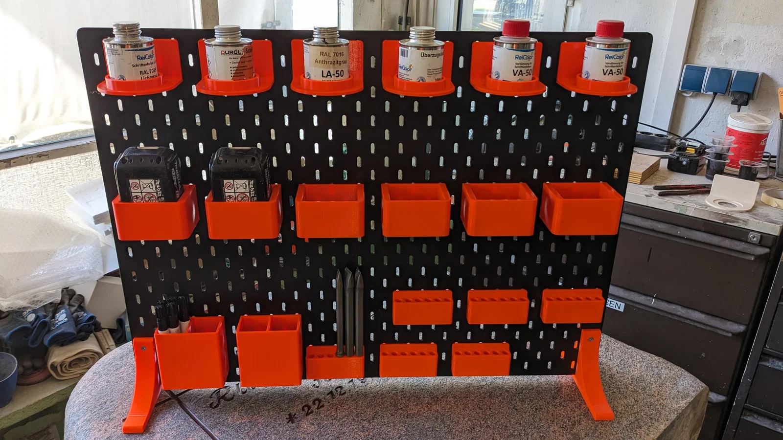 • Tính linh hoạt: Bạn có thể in nhiều bộ chân đế nếu bảng Skadis của bạn có kích thước quá khổ, giúp phân bổ trọng lượng đồng đều hơn trên bề mặt bàn.