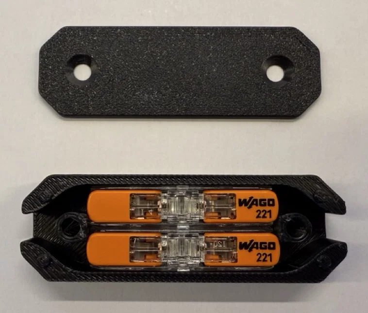 Mẫu thiết kế vỏ bảo vệ giúp bạn kết nối hai sợi dây điện bằng Wago 221-2411 và gắn chúng gọn gàng lên thanh nhôm định hình 2020 hoặc 3030. Giải pháp hoàn hảo để quản lý dây điện cho máy in 3D của bạn.
