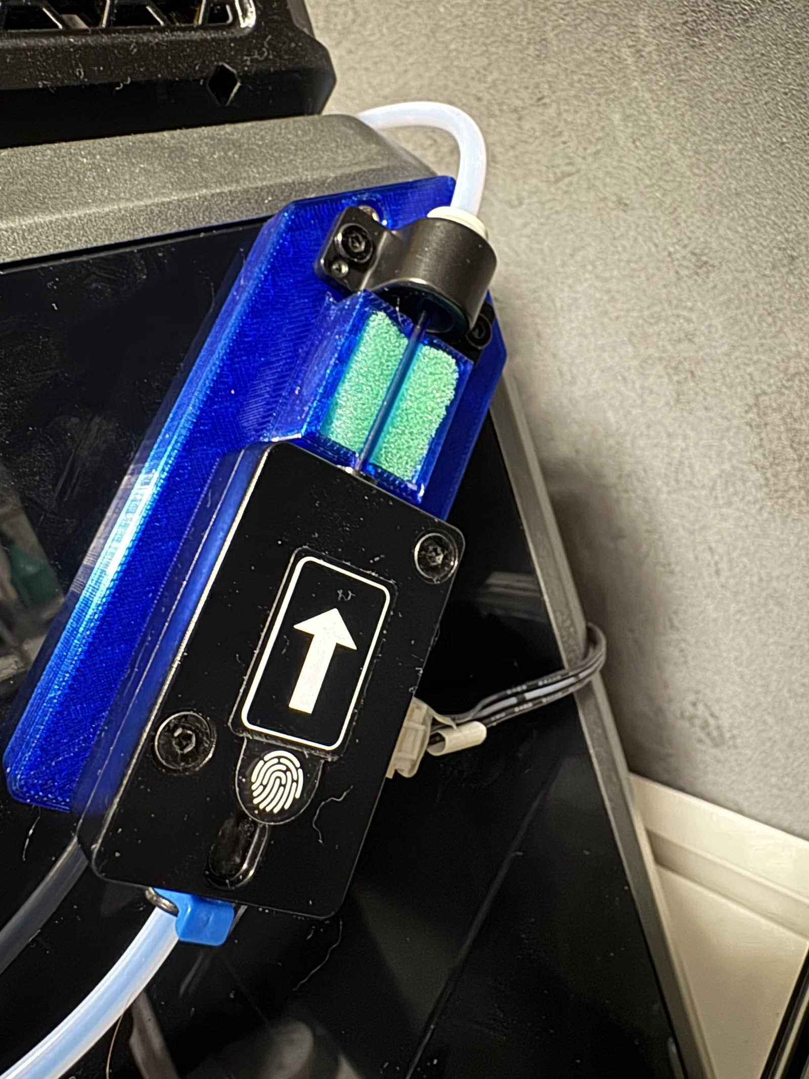 Giá đỡ cảm biến sợi nhựa ngoài tích hợp bộ lọc bụi. Tương thích với các loại nhựa PLA, PETG, ABS. Chiều cao lớp in khuyến nghị tối đa 0.2 mm. Chỉ cần dùng support cho phiên bản có chữ in trên nắp bộ lọc, bạn có thể xóa chữ trong phần mềm slicer nếu muốn. Dùng ốc vít đi kèm theo máy in để cố định. Có thể hơi khó vặn ốc một chút, bạn cứ mạnh tay một tí nhé. Sử dụng hai miếng bọt biển để làm bộ lọc.