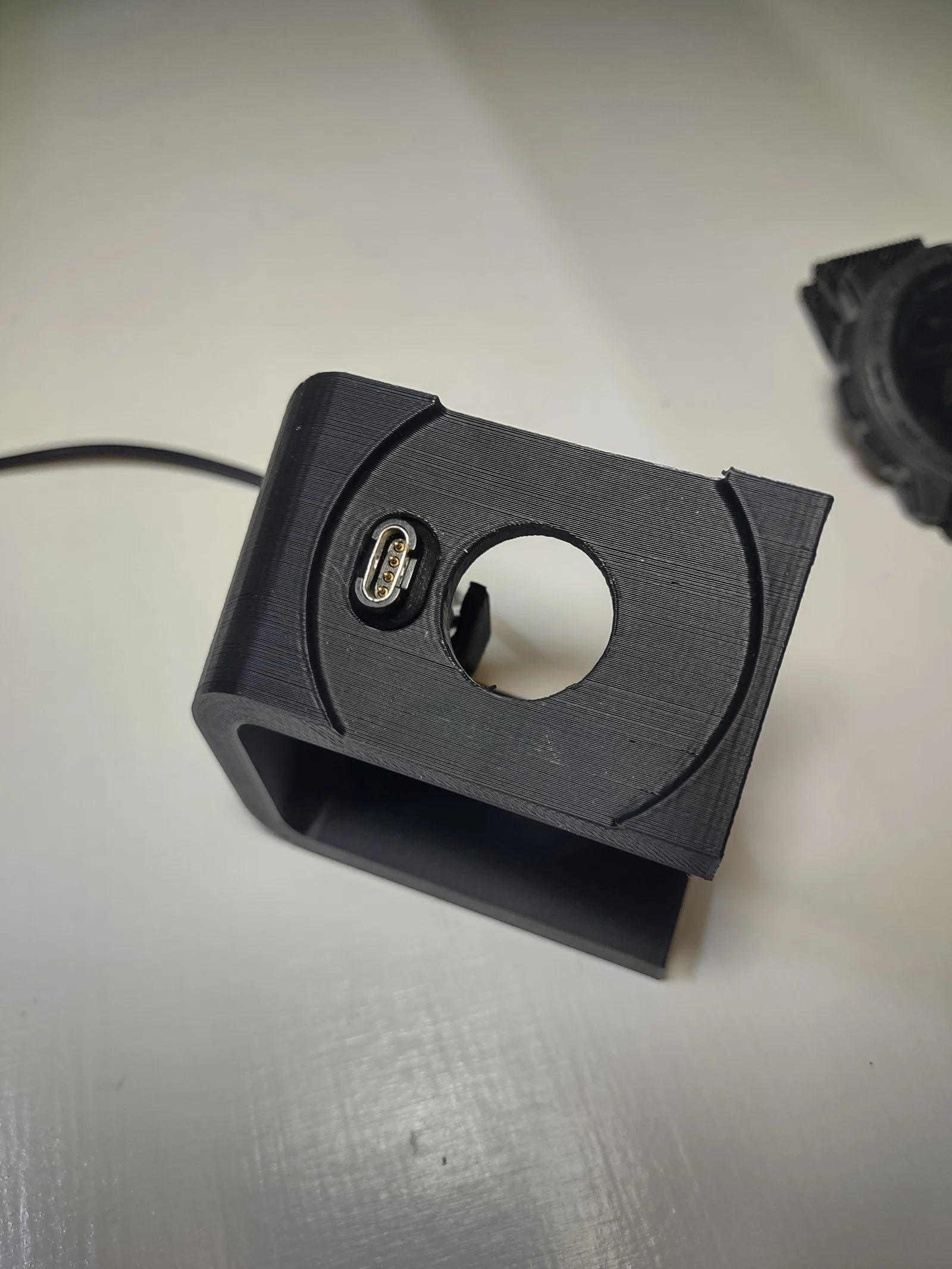 Đây là đế sạc dành cho đồng hồ Garmin Instinct. Dòng Instinct này là phiên bản 45mm. Mình có đính kèm ảnh của các mẫu khác để mọi người dễ so sánh, hy vọng sẽ giúp ích cho các bạn. Đối với các dòng Fenix: Bạn nào dùng thử mà thấy vừa thì báo mình biết nhé. Cổng sạc của chúng nằm ở cùng vị trí trên đồng hồ, nhưng các mẫu đó là 51mm nên mình không chắc nó có khớp hoàn toàn không. Mọi người cứ để lại bình luận rồi mình sẽ cập nhật lại mẫu thiết kế nhé! =] Mình đã lấy thiết kế trước đó của @Patrick dành cho Garmin vivoactive 4, sau đó lật ngược lại trong Tinkercad để chuyển lỗ cắm sạc sang phía đối diện cho khớp với Instinct. Cổng sạc trên Vivoactive nằm ở vị trí 3 giờ, còn trên Instinct lại nằm ở vị trí 9 giờ. Mình rất thích thiết kế đơn giản, chắc chắn của @Patrick nên đã tùy chỉnh lại để dùng cho chiếc Instinct của mình. Các loại đế giữ đồng hồ khác thường rất dễ bị đổ, còn mẫu này thì cực kỳ vững chãi. Cập nhật: Đã sửa và tải lại tệp vào ngày 01/01/25 để khắc phục lỗi nghiêng 2 độ khi import (giúp mặt đế đặt phẳng hoàn toàn trên bề mặt in).
