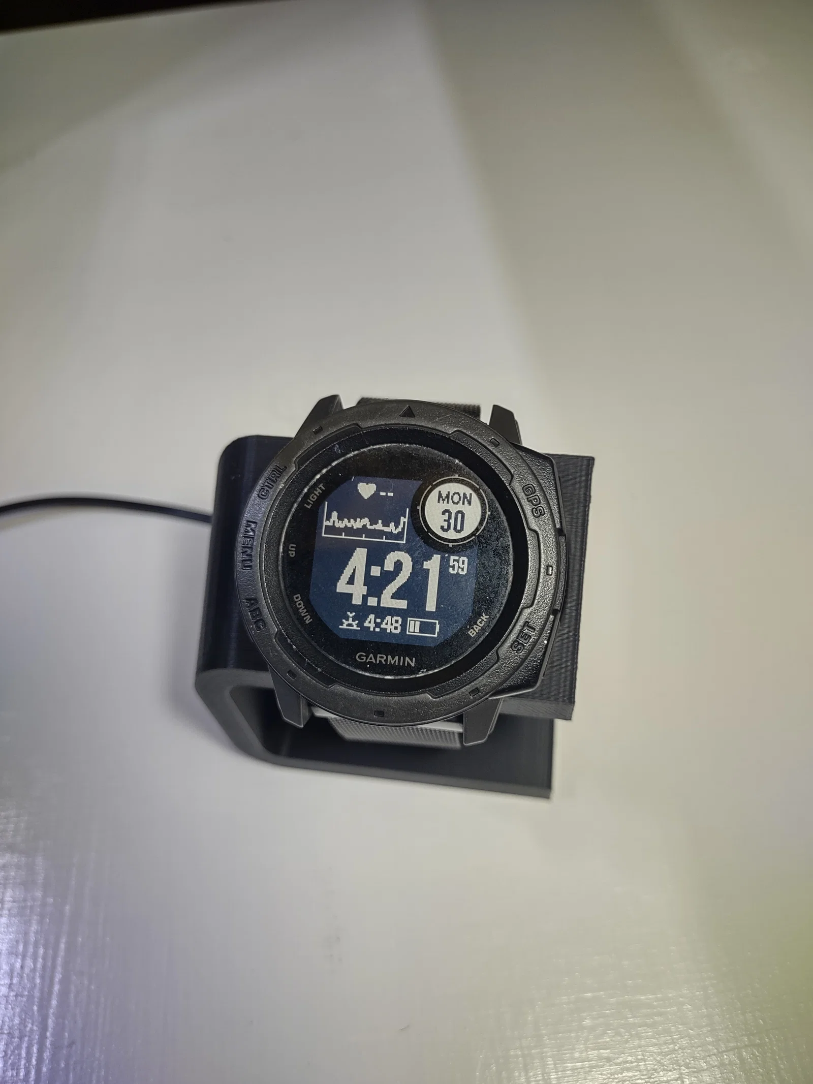 Đế sạc chắc chắn dành cho Garmin Instinct (45mm). Được tinh chỉnh từ thiết kế của @Patrick, cổng sạc đã được đổi vị trí từ 3 giờ sang 9 giờ để phù hợp hoàn hảo. Thiết kế vững chãi, không lo bị đổ, đã cập nhật sửa lỗi nghiêng để dễ dàng in 3D.