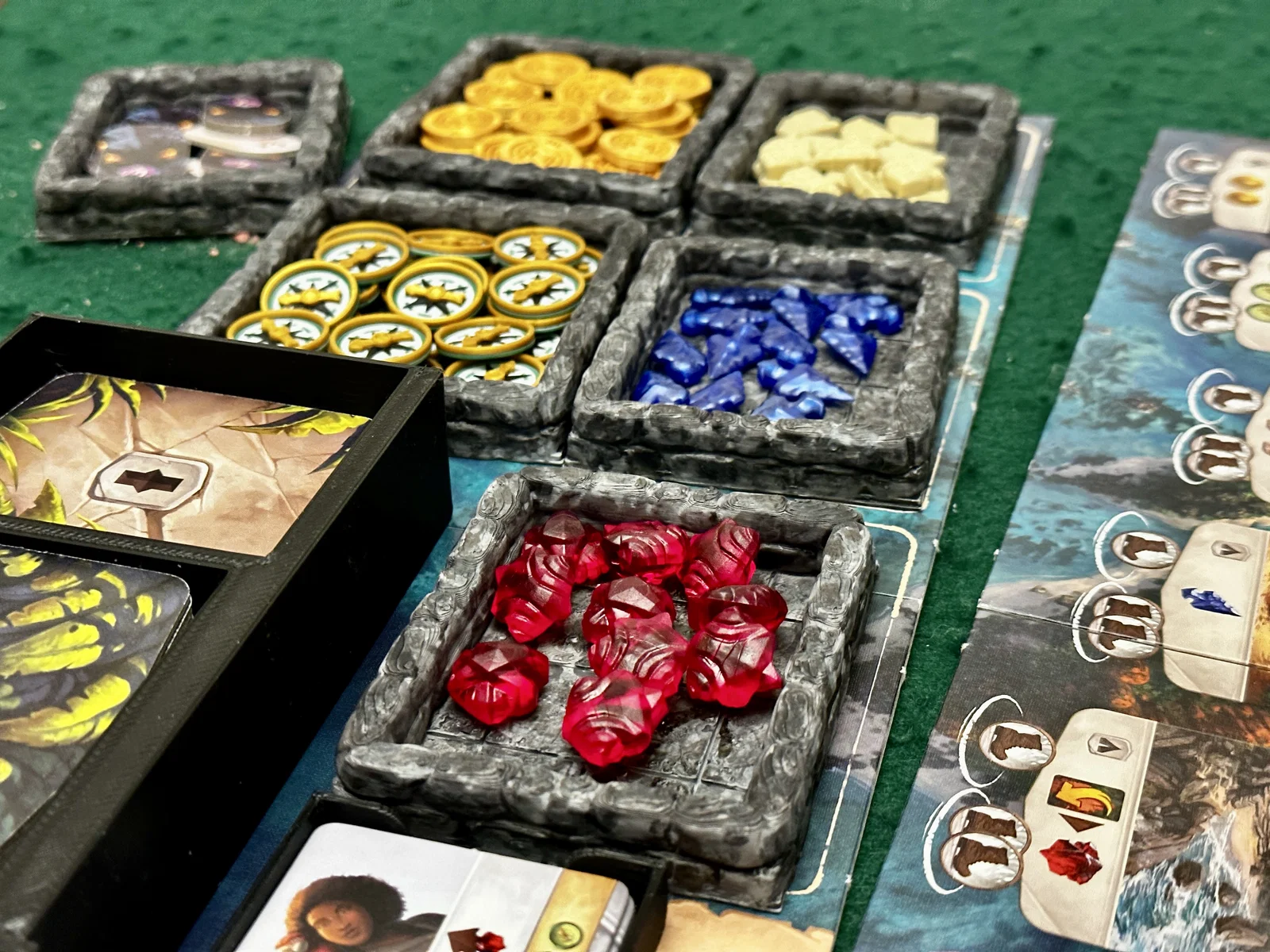 Đây là bản remix các khay đựng tài nguyên của ryankinnaman, được điều chỉnh kích thước để vừa vặn hoàn hảo với bộ organizer Lost Ruins of Arnak của Fabmaszter, giúp bàn chơi của bạn gọn gàng và bắt mắt hơn.