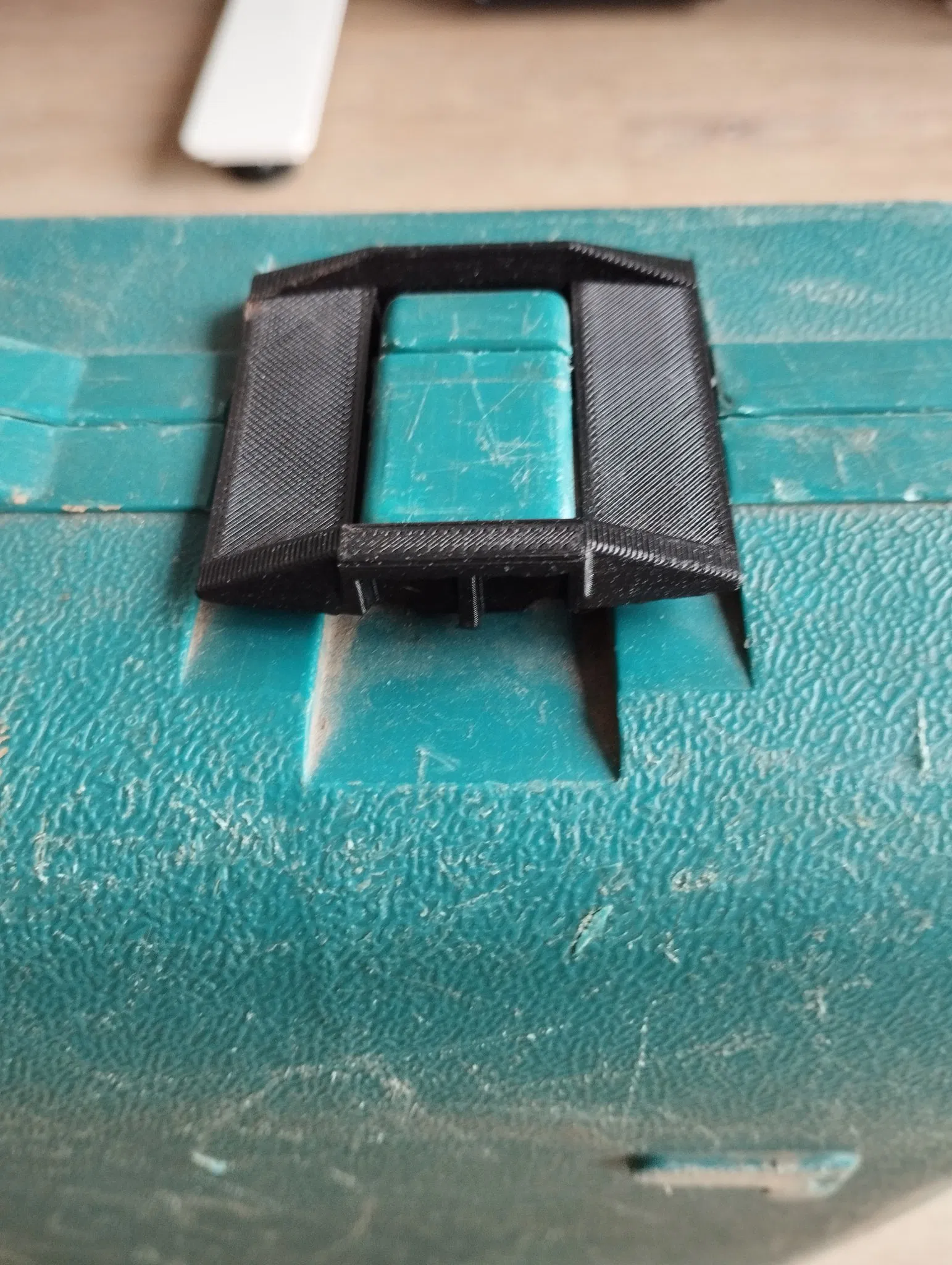 Kvůli chybějícím sponám jsem vytvořil kopii, aby šel kufr na nářadí opět zavírat (jelikož žádné spony už neměl). Doporučuji tisknout z PETG, jelikož je pružné a vydrží ohyb při otevírání.