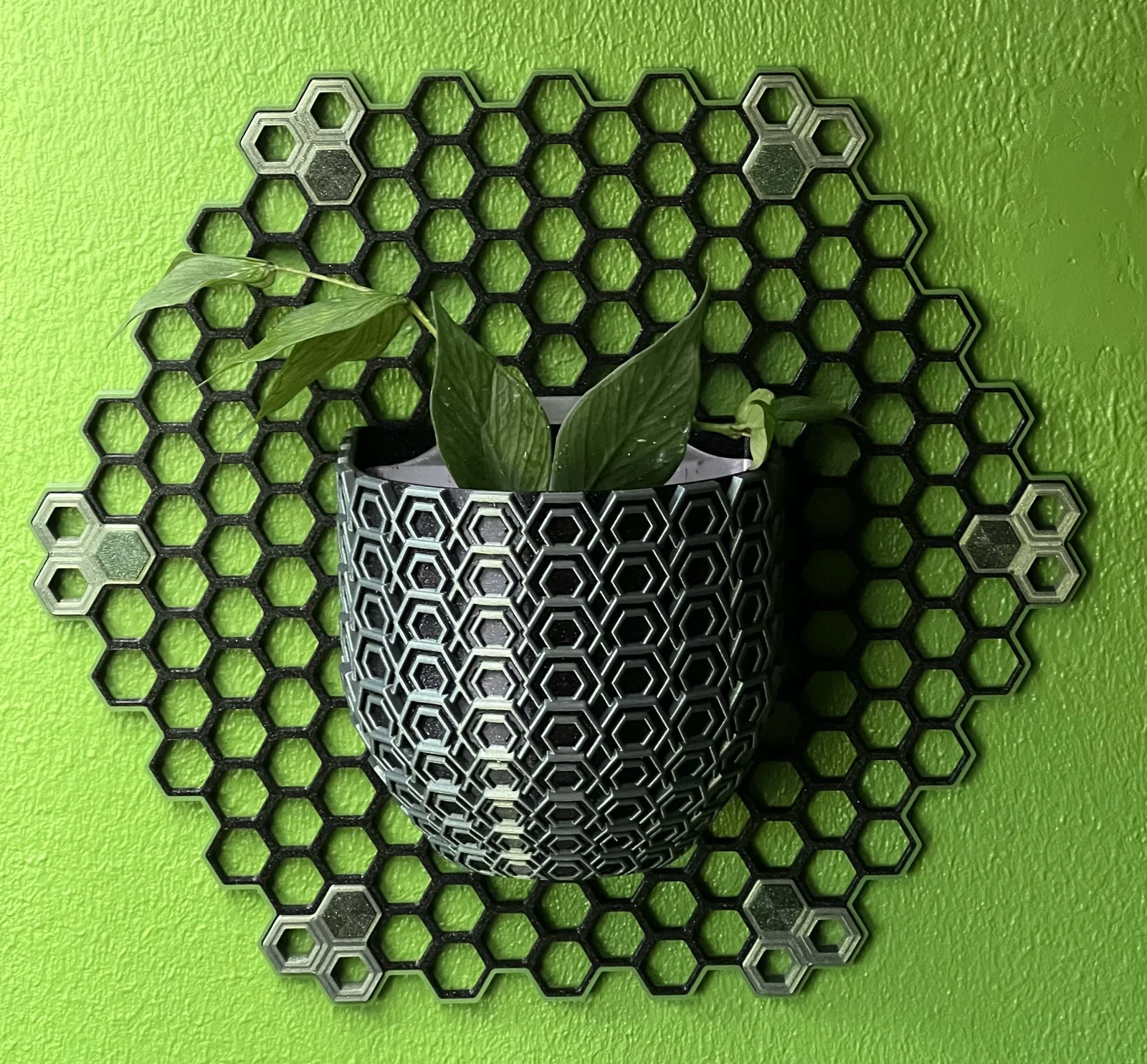 - Vì mình rất thích dùng Honeycomb Storage Wall nên mình đã căn chỉnh các móc treo khớp với lưới của nó. Mình cũng kèm theo các file dùng vít M5x8mm để bạn có thể treo chậu lên tường.