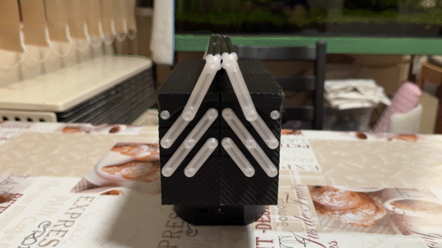 Khi lắp ráp, hãy đảm bảo rằng các "ốc vít" có thể xoay được trong khớp nối, nếu không nó sẽ bị kẹt khi mở hộp.