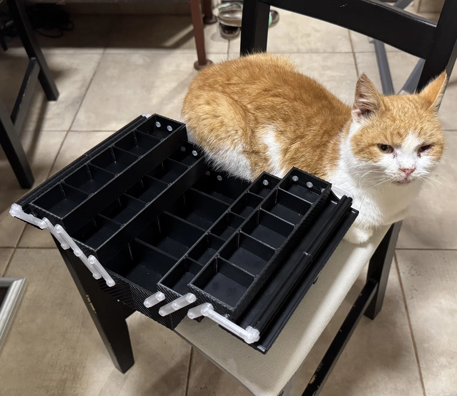 Việc lắp ráp hơi mất thời gian một chút nhưng bù lại khá thú vị. Mình đã test kỹ rồi. Một trong các hình ảnh có hiển thị loại keo cần dùng. Bạn nên dán cố định các chốt khóa lại. Các vách ngăn có thể cần phải gọt bavia một chút cho khớp. Mình khuyên bạn nên in các chốt nhựa bằng tốc độ chậm hơn và với độ dày lớp in (layer height) nhỏ để đảm bảo độ bền.