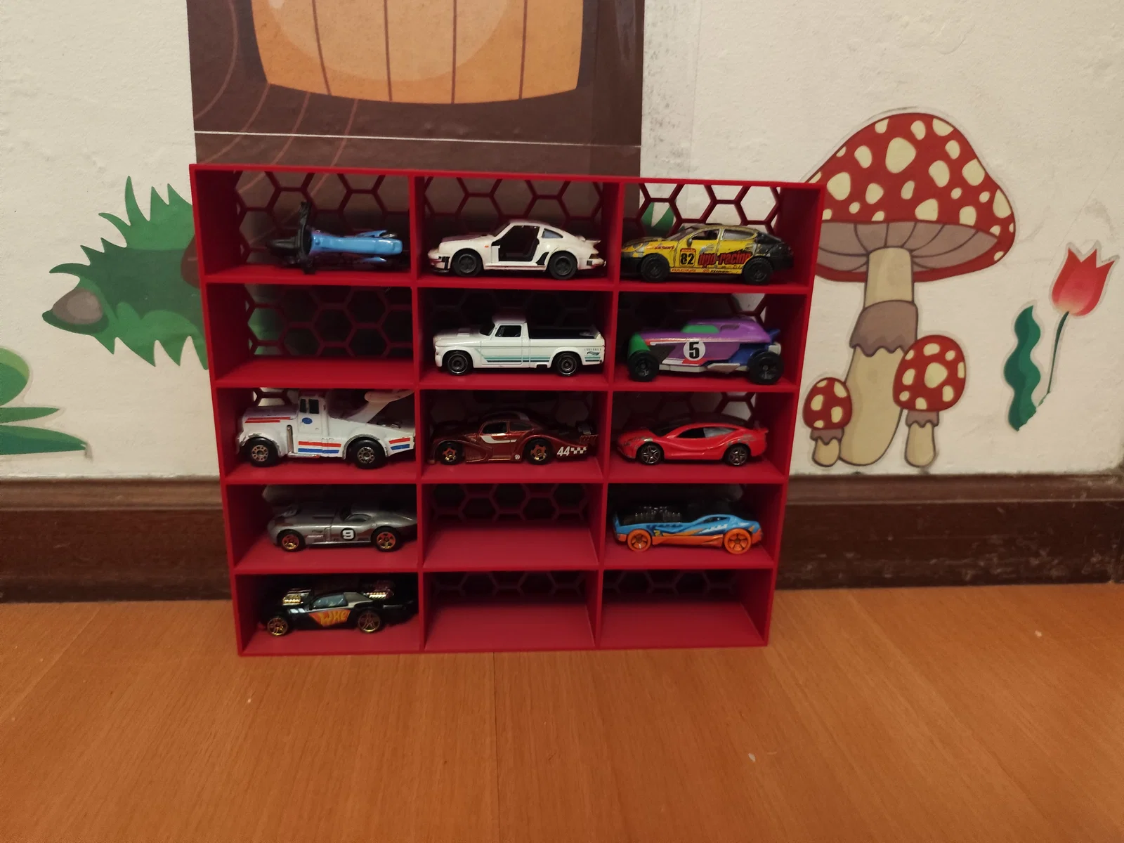 Giải pháp lưu trữ tiện lợi cho 15 chiếc xe mô hình tỉ lệ 1:64. Thiết kế này phù hợp với xe Hot Wheels và các loại xe đồ chơi cùng kích thước, giúp bạn sắp xếp bộ sưu tập gọn gàng và bắt mắt hơn.