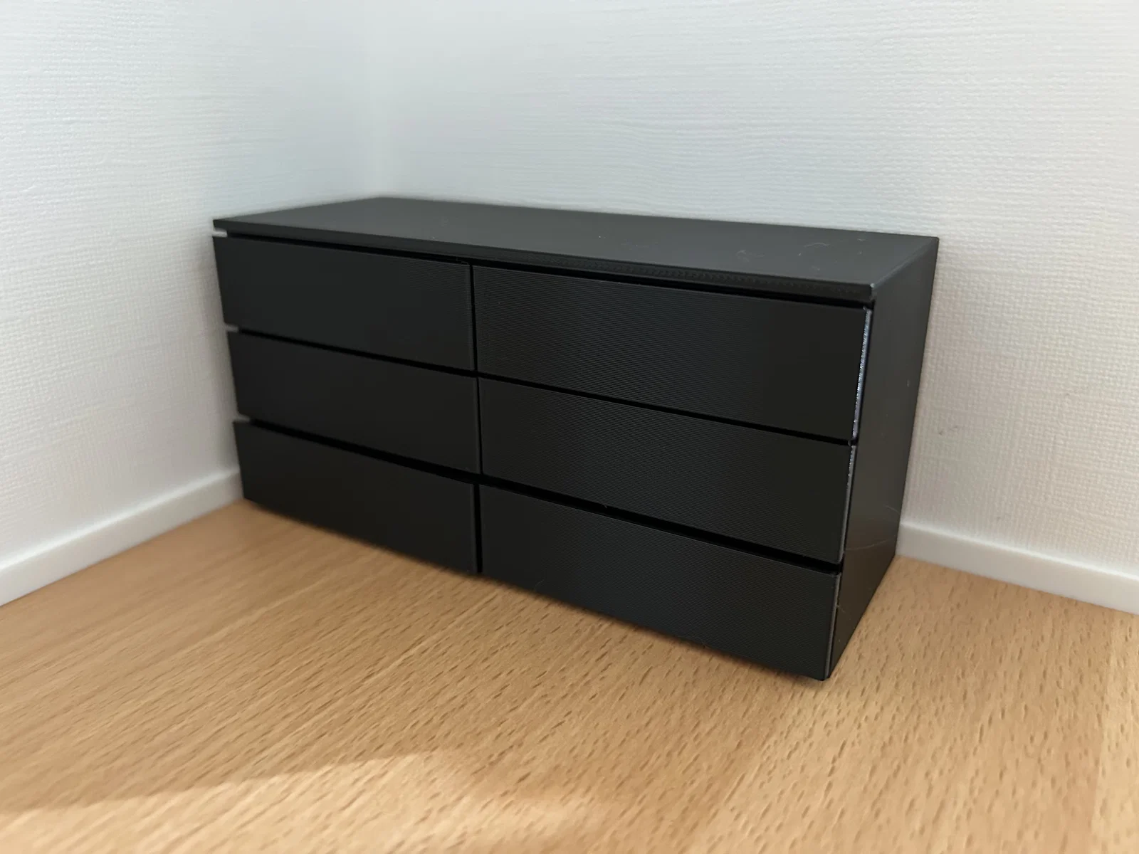 Nếu bạn là một người đam mê mô hình nhà búp bê hoặc đang tìm cách trang trí cho không gian trưng bày thu nhỏ của mình, thì mẫu tủ ngăn kéo lấy cảm hứng từ dòng IKEA Malm này chính là mảnh ghép hoàn hảo. Với thiết kế hiện đại, tinh tế và tối giản, món đồ nội thất 1:12 này sẽ mang lại vẻ sang trọng và ngăn nắp cho bất kỳ căn phòng búp bê nào mà nó góp mặt.