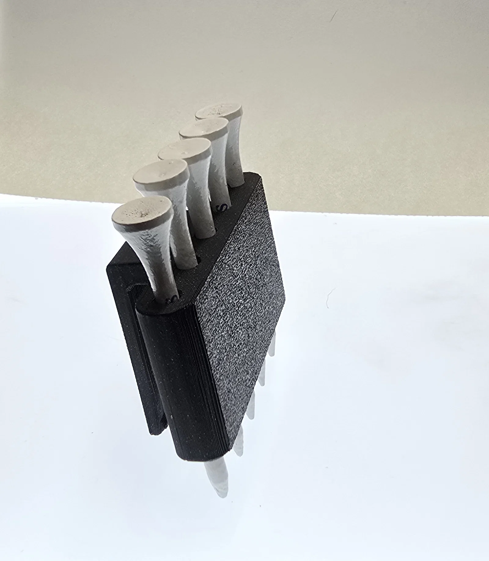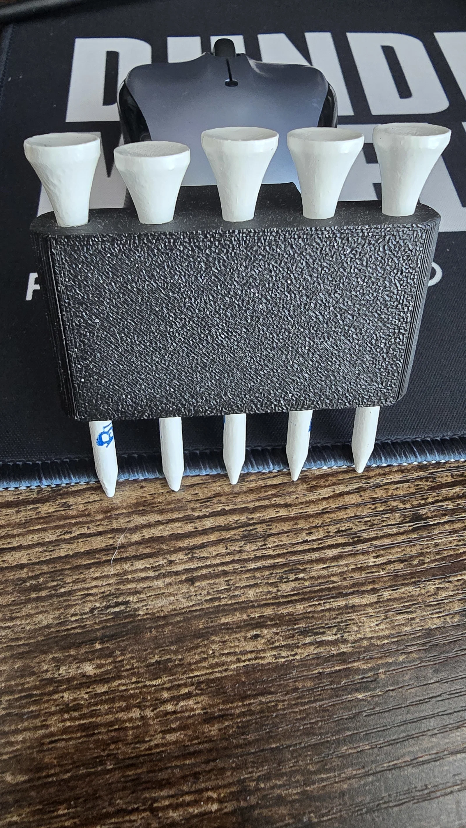 Giá đỡ tee golf đeo được, thiết kế nhỏ gọn để bạn dễ dàng cài vào thắt lưng hoặc cạp quần. Sản phẩm giúp giữ tee cố định, tránh bị rơi rớt khi di chuyển trên sân golf. Bạn có thể in bằng nhựa PLA với support để đảm bảo độ bền cho phần kẹp.