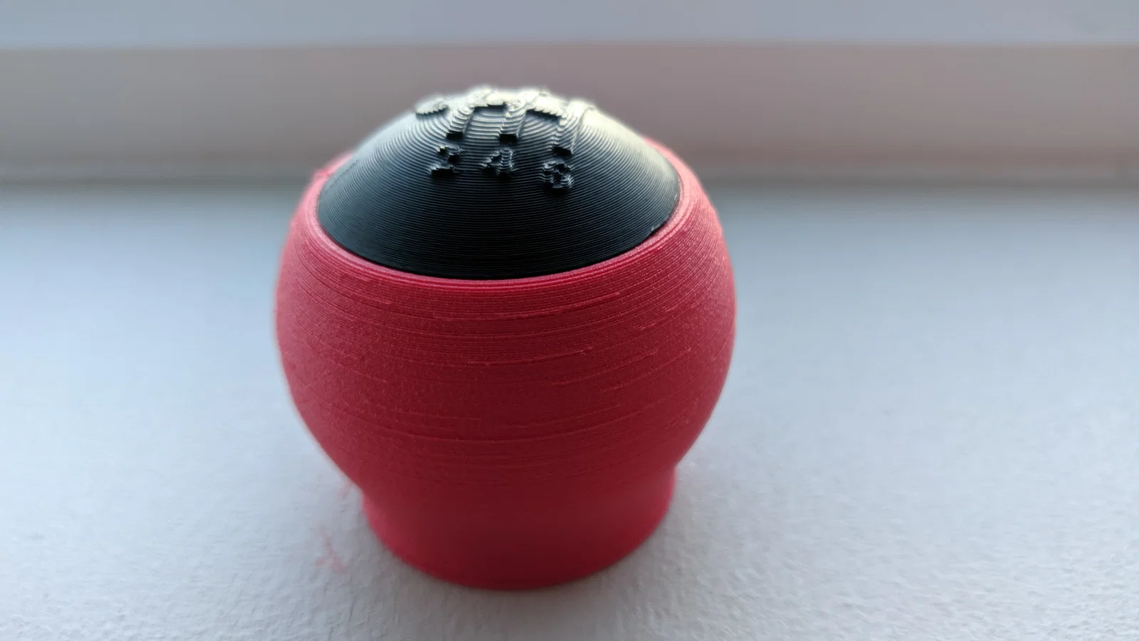 Mẫu núm cần số gồm nhiều phần với các mặt đậy tùy biến. Vỏ ngoài làm bằng TPU cho cảm giác cầm nắm thoải mái, lõi và mặt đậy nên in bằng vật liệu chịu nhiệt như PC để đảm bảo độ bền khi để trong xe dưới trời nắng.