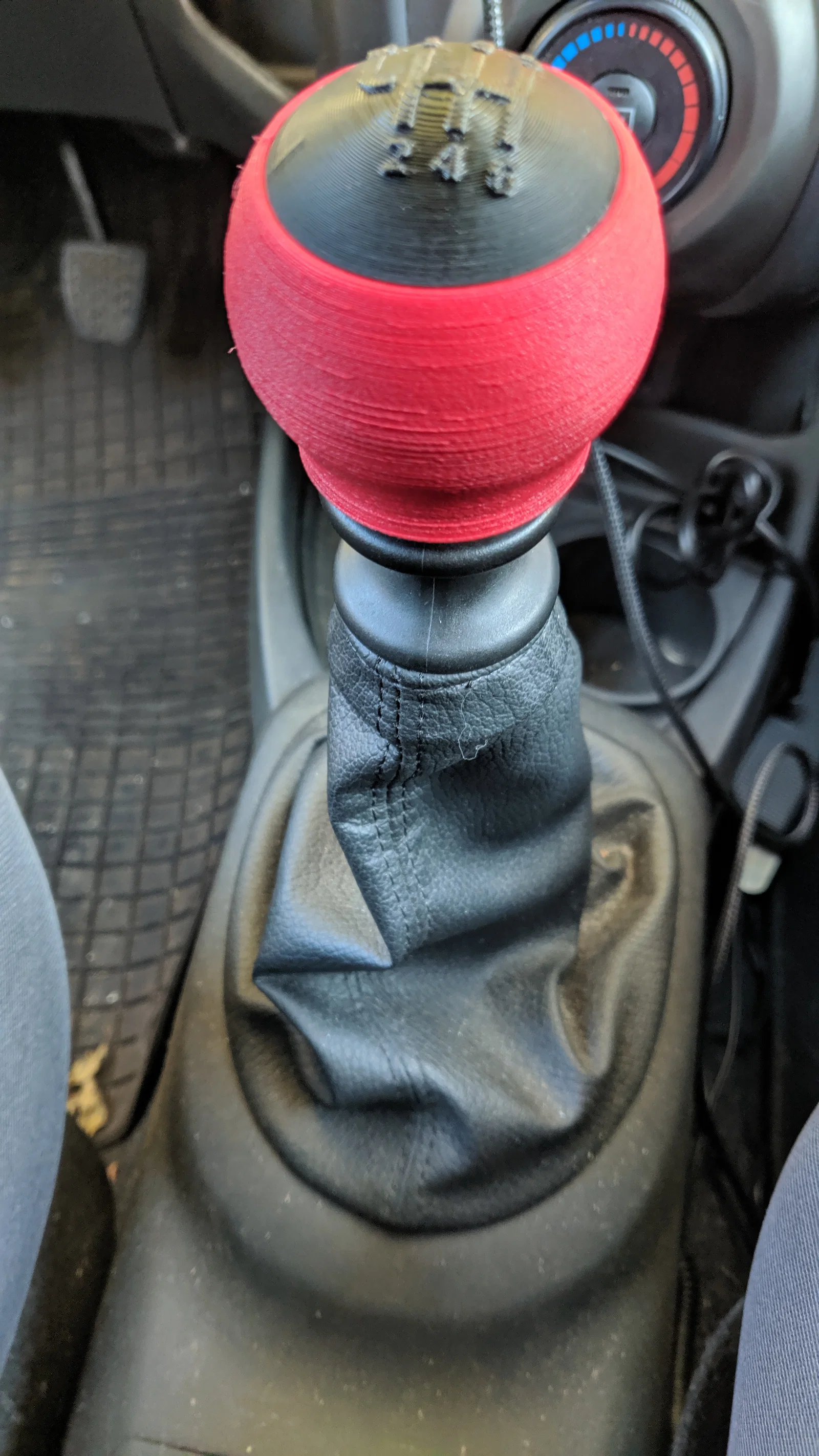 - Sau khi in xong, trước tiên hãy vặn lõi vào vỏ ngoài, sau đó lắp cụm đó vào cần số xe của bạn. Khi đã chắc chắn, bạn có thể chỉnh hướng mặt đậy rồi ấn mạnh vào cụm núm.
