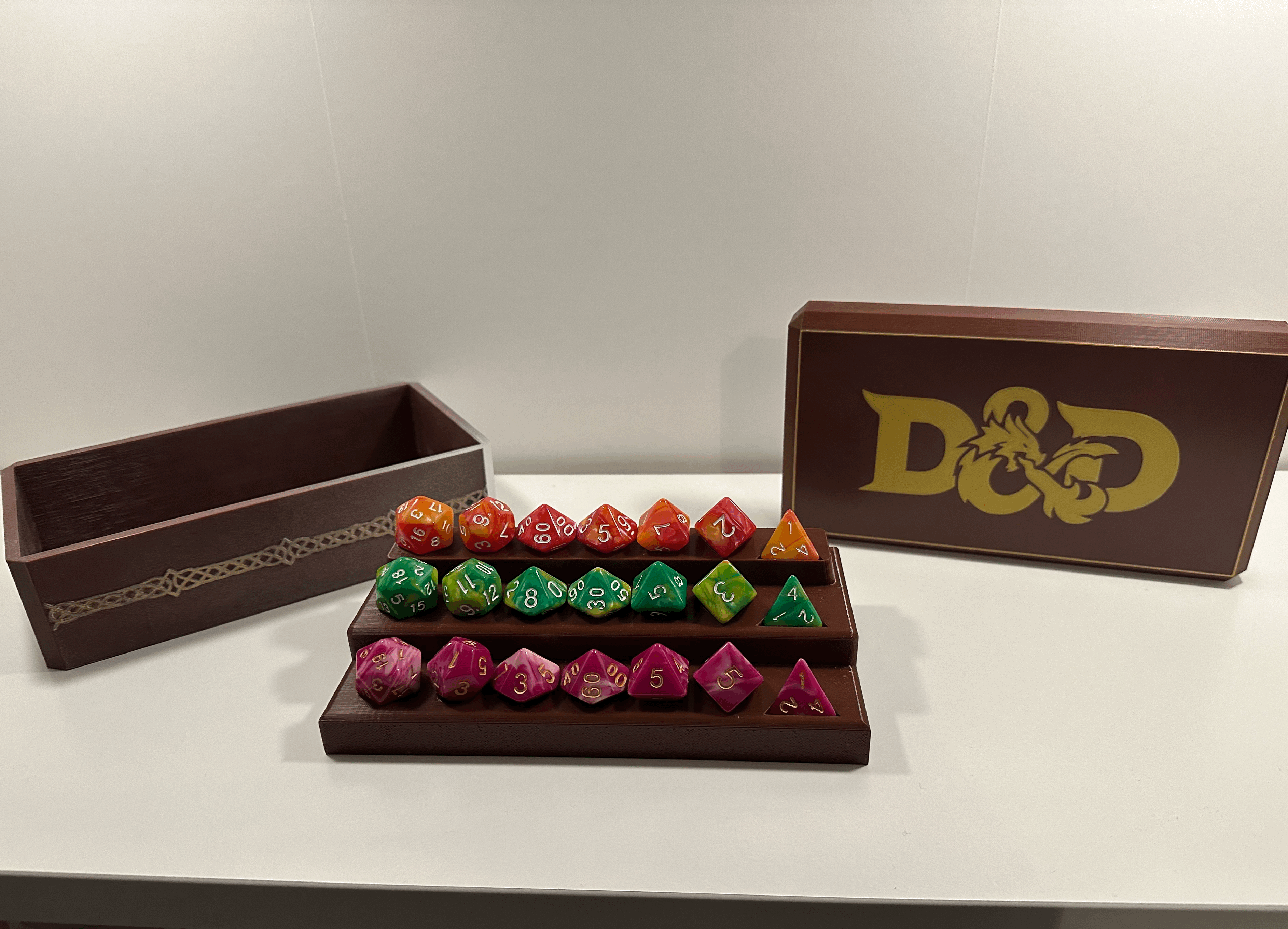 Hộp đựng xúc xắc 3D kết hợp khay trưng bày tiện lợi cho D&D